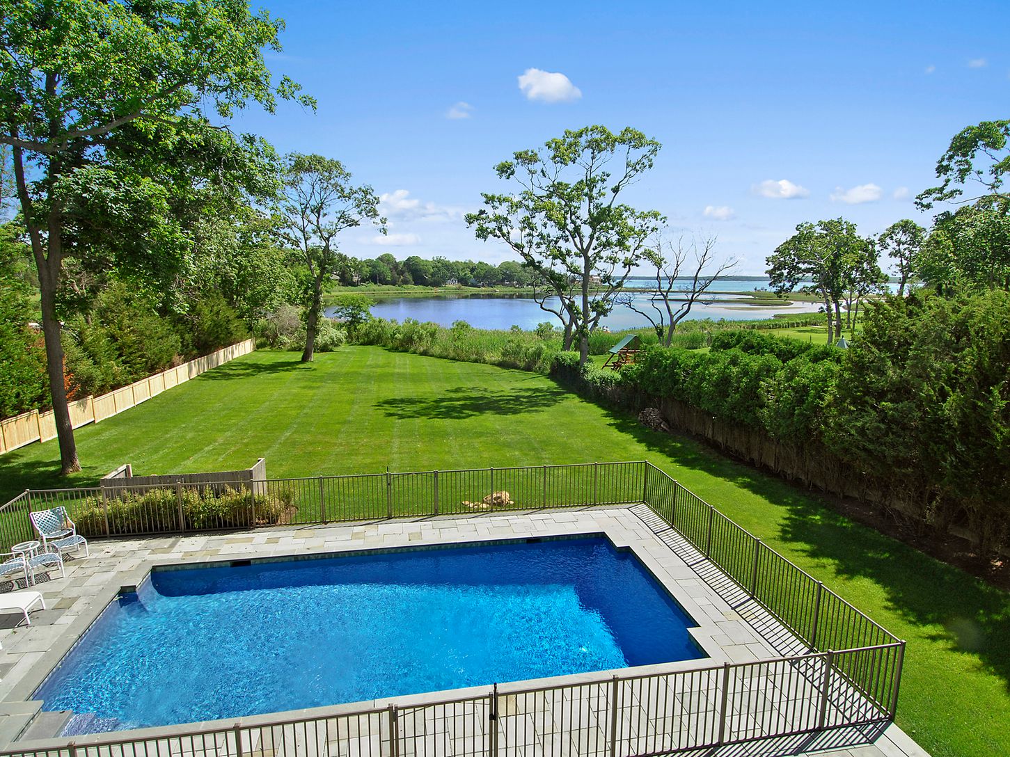 This immaculate 4 bedroom, 4 bath custom home is designed to take full advantage of lovely views of Great Pond Creek. The dining room, great room with central fireplace, media room, and first floor master bedroom feature wide double doors and windows that open onto the covered porch and pool area with pond views. Double pocket doors separate these rooms to allow for a modern flow of space or intimate compartmentalization. Upstairs, three en su