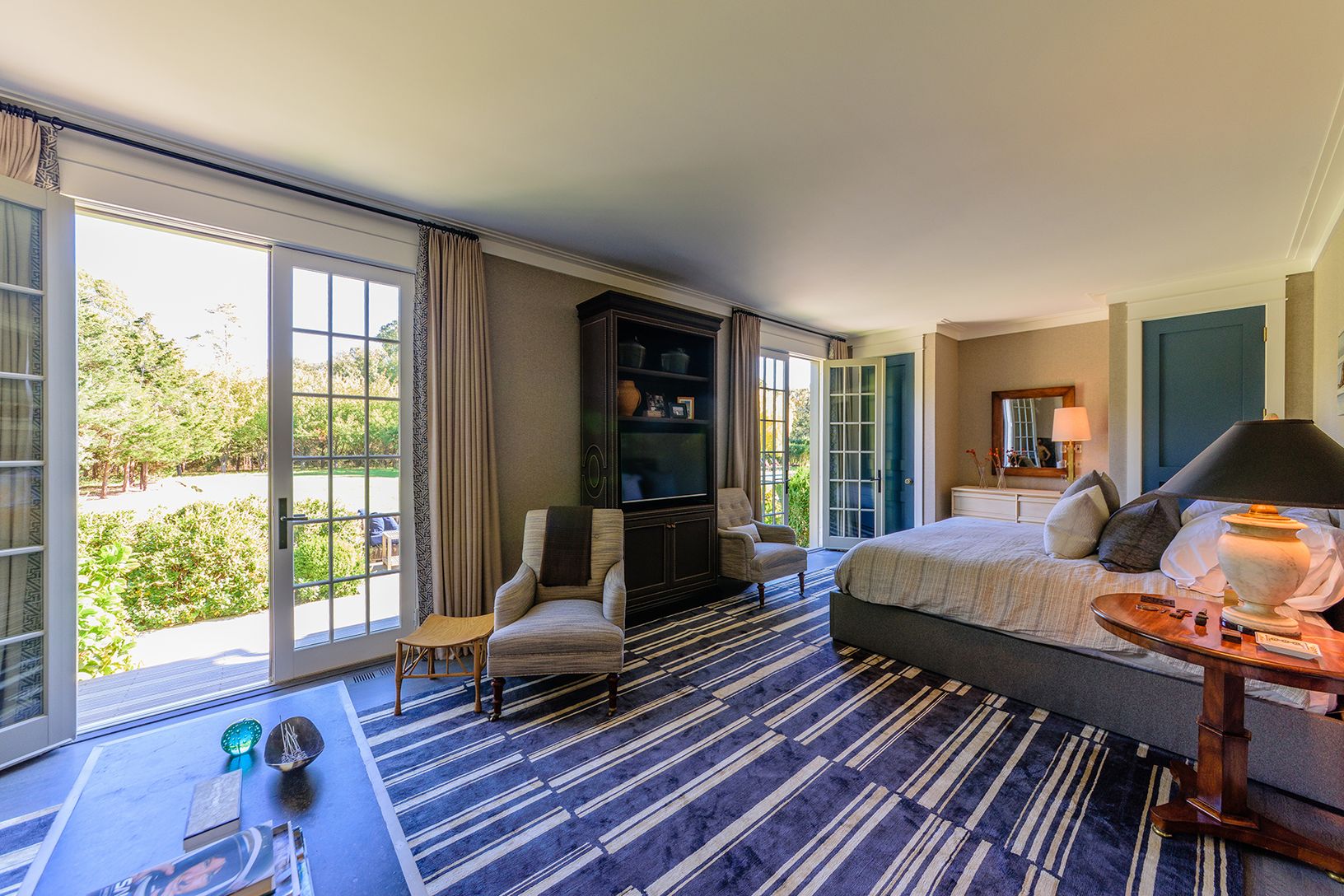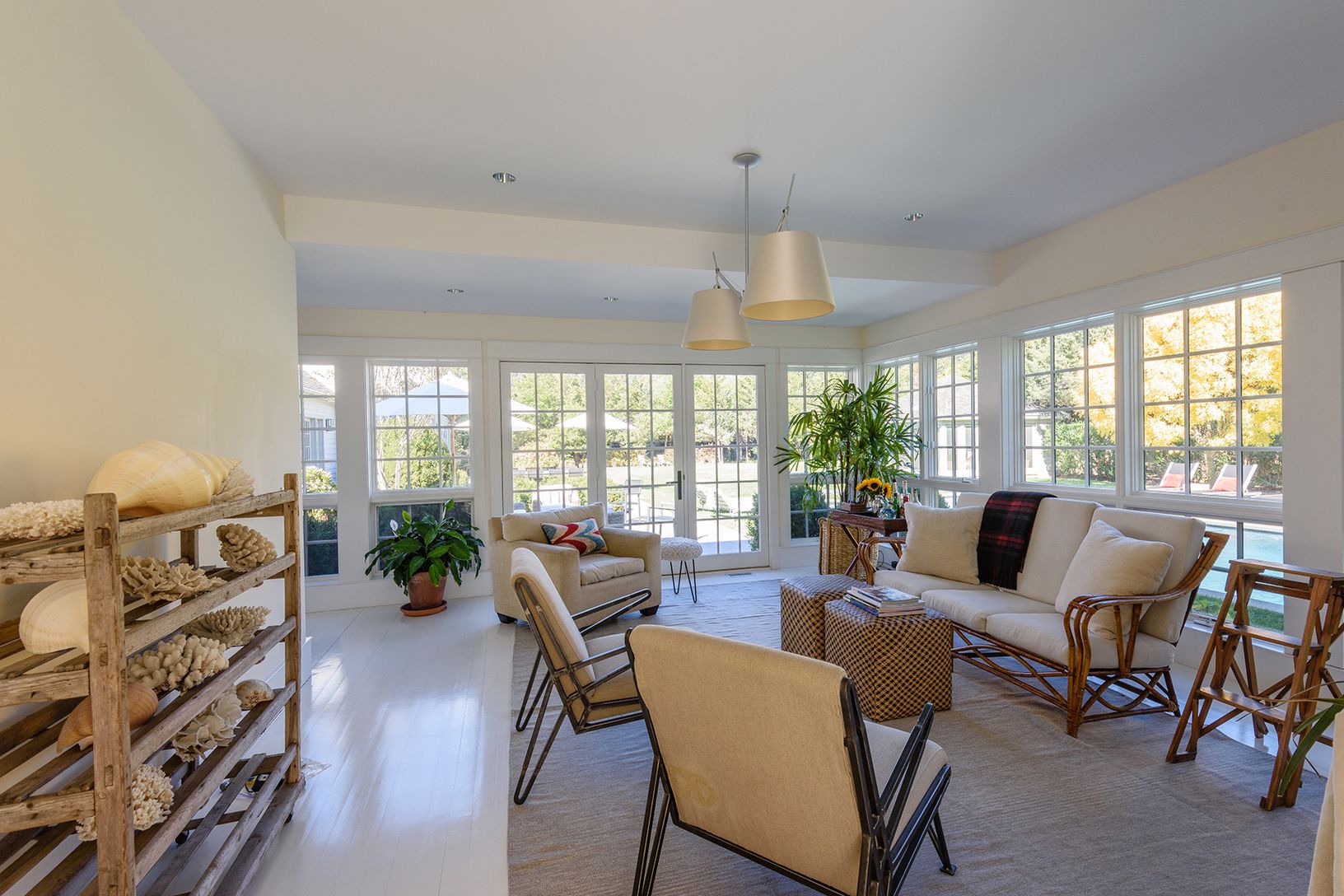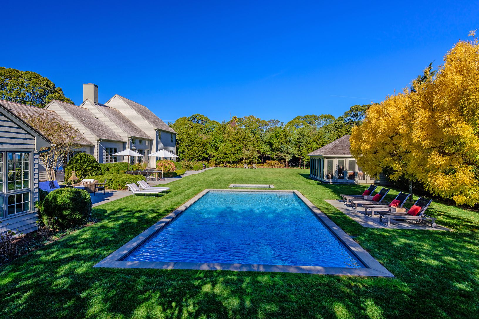 Set amid 2.7 acres of enchanting gardens and located just moments from Sag Harbor Village, this inspired 6 bedroom, 7 bath masterpiece with interiors by renowned designer David Scott is the pinnacle of style and function. A gated gravel drive leads through a magical landscape of specimen trees and meadows to the long shingled house with staggered roof lines. The main entry foyer opens to two luxurious entertaining spaces: the expansive, double