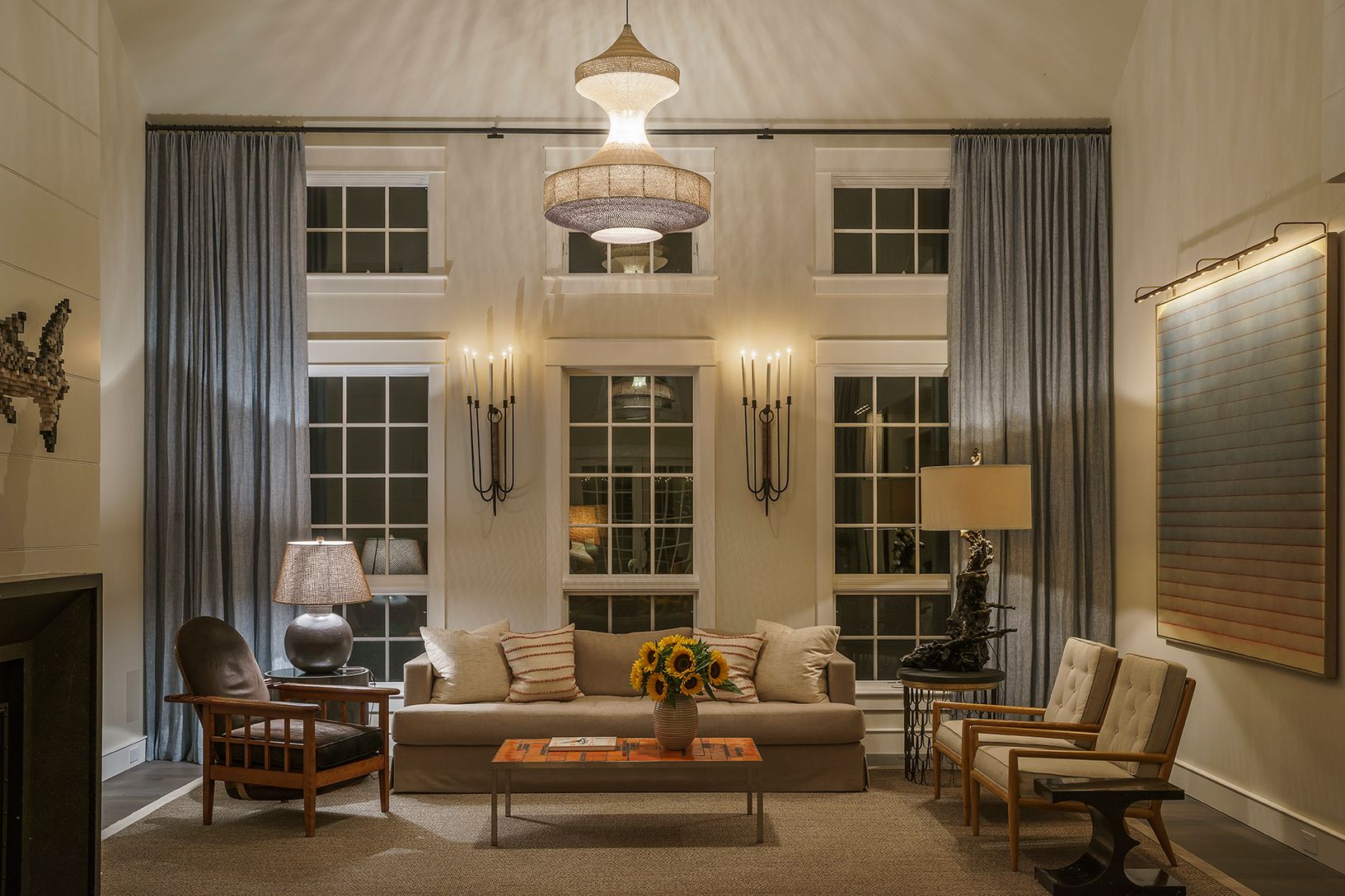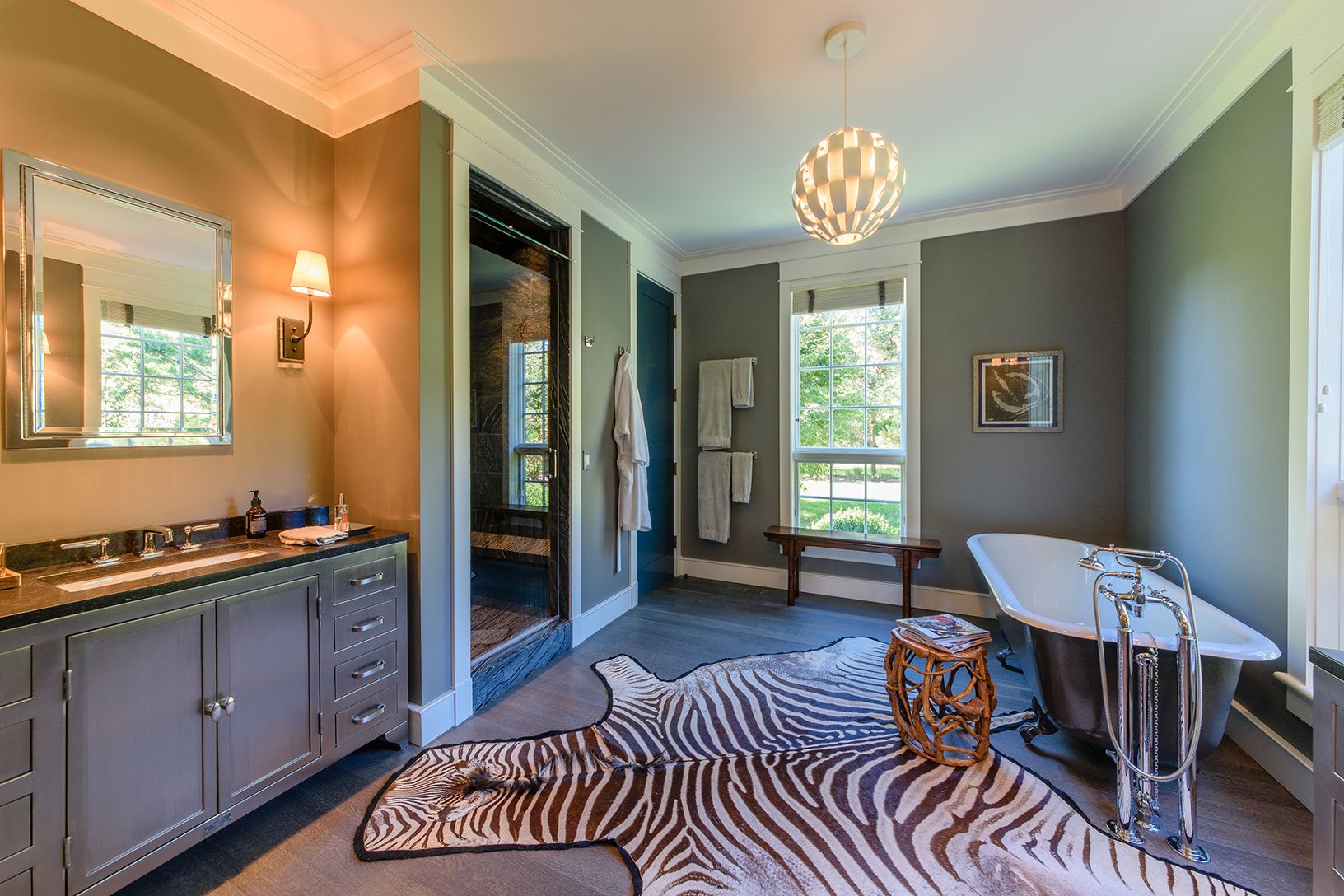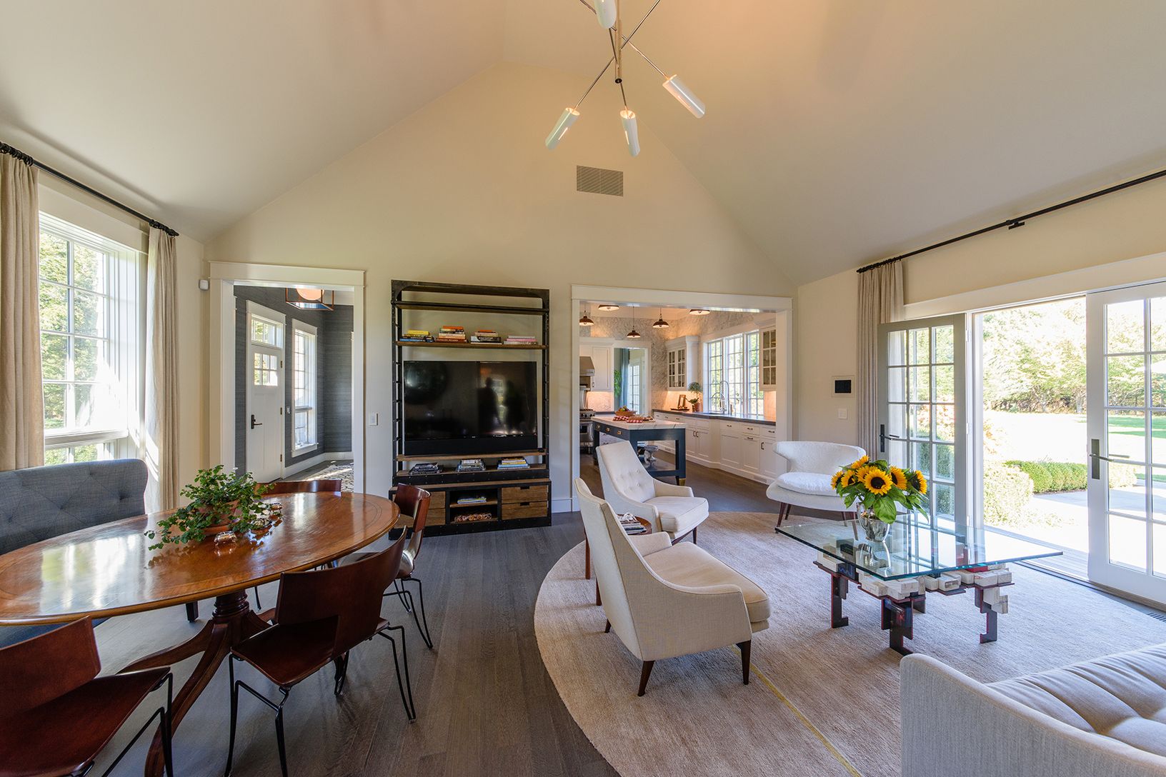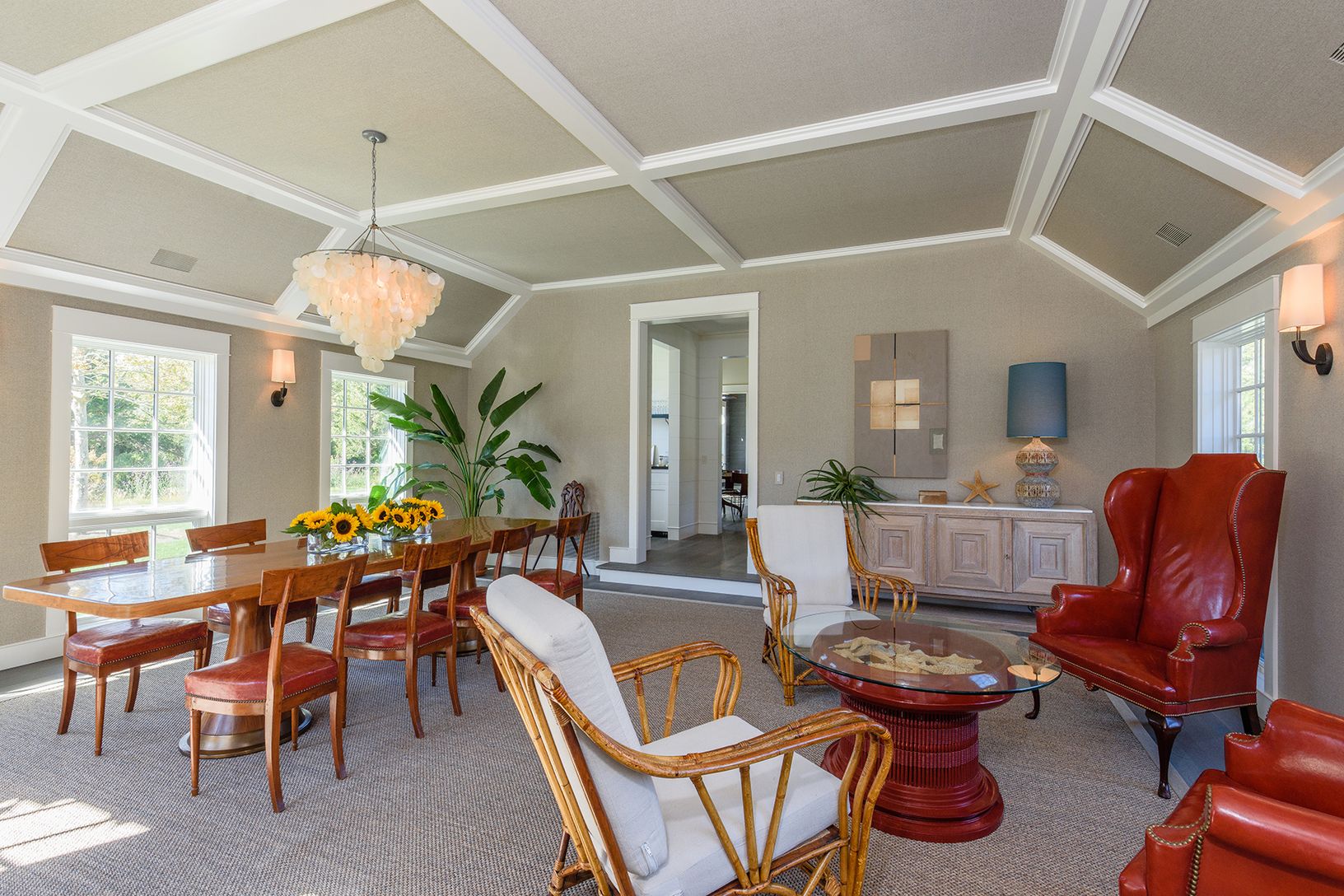 Set amid 2.7 acres of enchanting gardens and located just moments from Sag Harbor Village, this inspired 6 bedroom, 7 bath masterpiece with interiors by renowned designer David Scott is the pinnacle of style and function. A gated gravel drive leads through a magical landscape of specimen trees and meadows to the long shingled house with staggered roof lines. The main entry foyer opens to two luxurious entertaining spaces: the expansive, double
