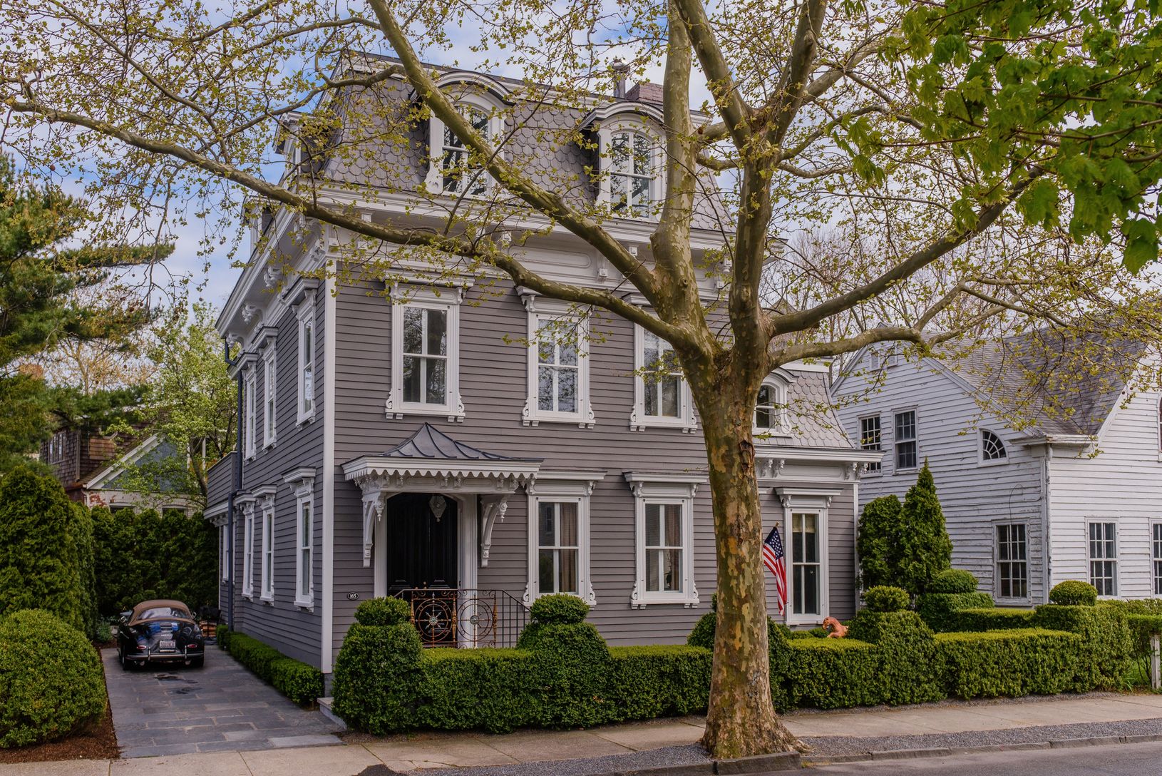 Built by clockmaker F.B. Hope in 1865, the historic Benjamin Hope House located on Sag Harbor's iconic Main Street has undergone a full restoration by Ben Krupinski Builders and AML Architecture with interiors by Michael Lee, garnering placement in the pages of Architectural Digest. Three bays wide and three stories tall, this Second Empire style home stands at the doorway to Sag Harbor Village and is offered for sale fully furnished.
