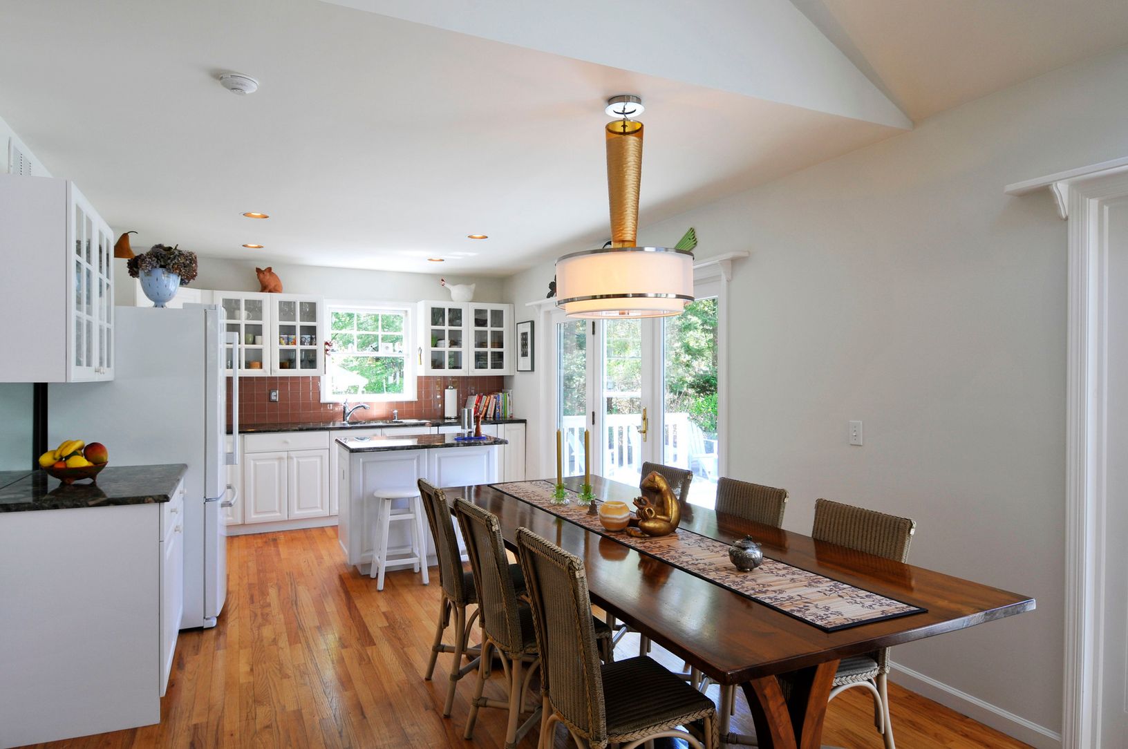 New to the Market. Pristine three bedroom, two bath traditional on just shy of an acre just outside Sag Harbor Village. Beautiful gunite free form pool surrounded by lush landscaping including specimen trees. Awning covered deck for outside dining. Open floor plan with sliders along the kitchen and living room out to the deck. A great summer private getaway yet close to village and beaches.