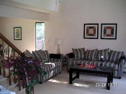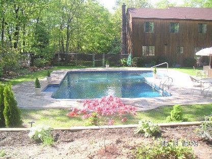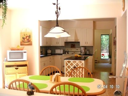 Contemporary 2,500 sq.ft. home on 1/2 acre plus (last house on dead-end road adjacent to large wooded area). Private and very clean. Tastefully furnished and decorated four bedrooms, two and a half baths, living room, dining room, den with wood-burning fireplace, main-floor laundry room. Spacious eat-in kitchen with granite countertops, island and Jenn-Air oven. One-car attached garage. Central a/c, new heated in-ground swimming pool with