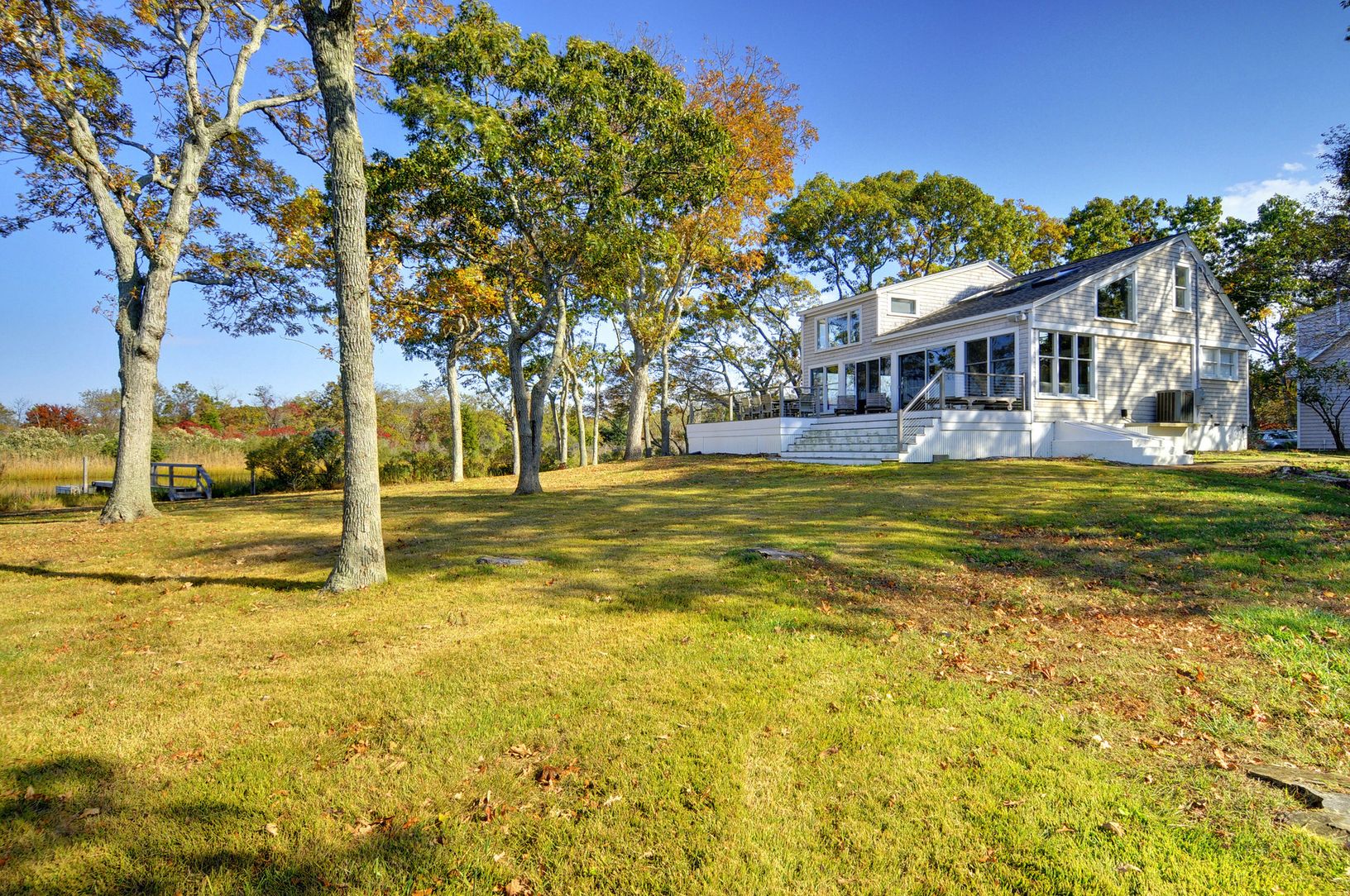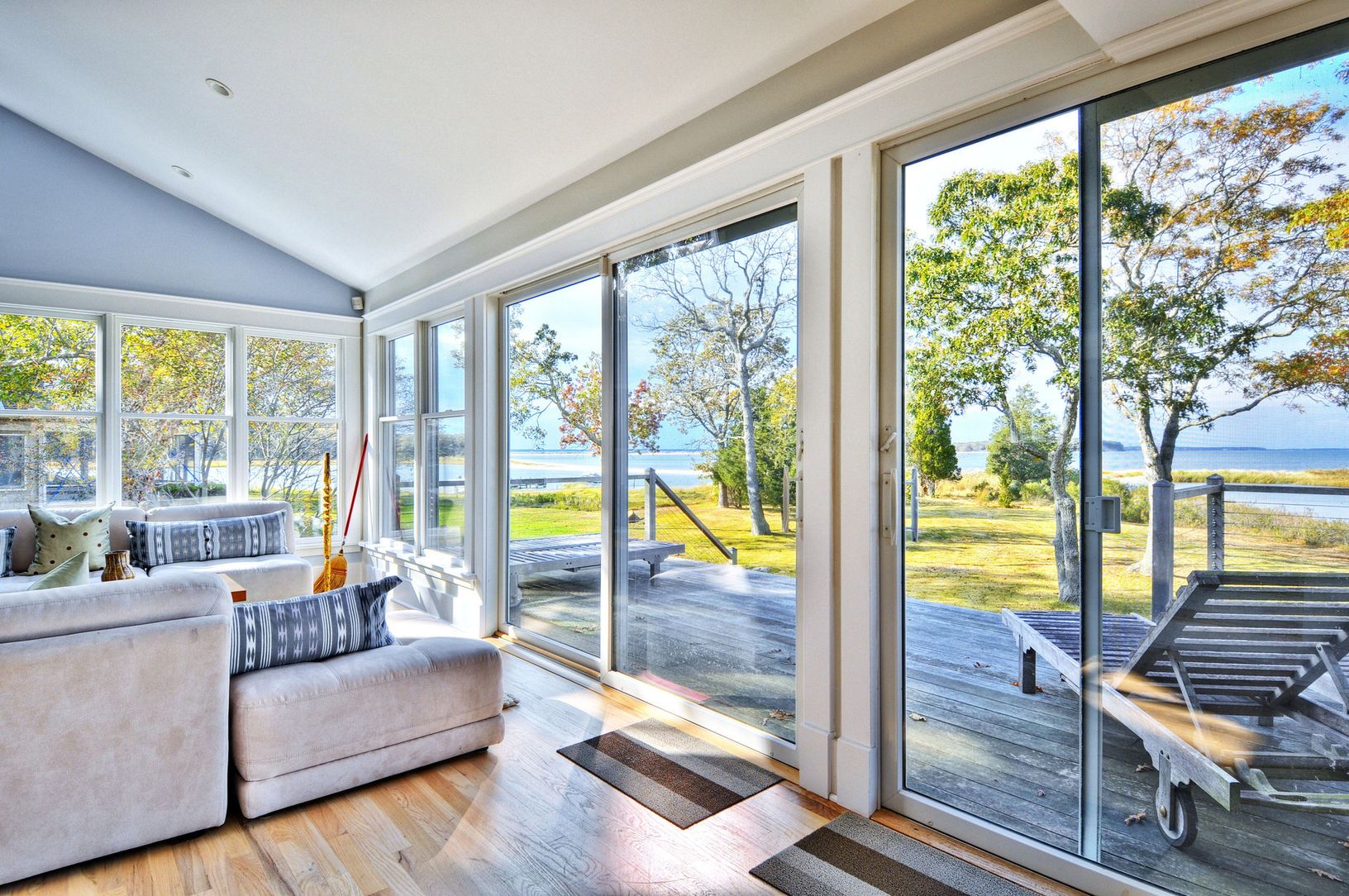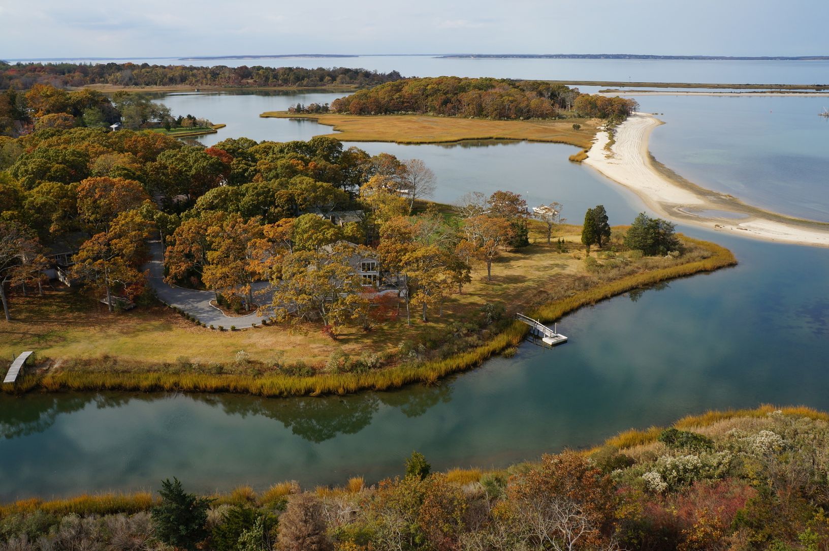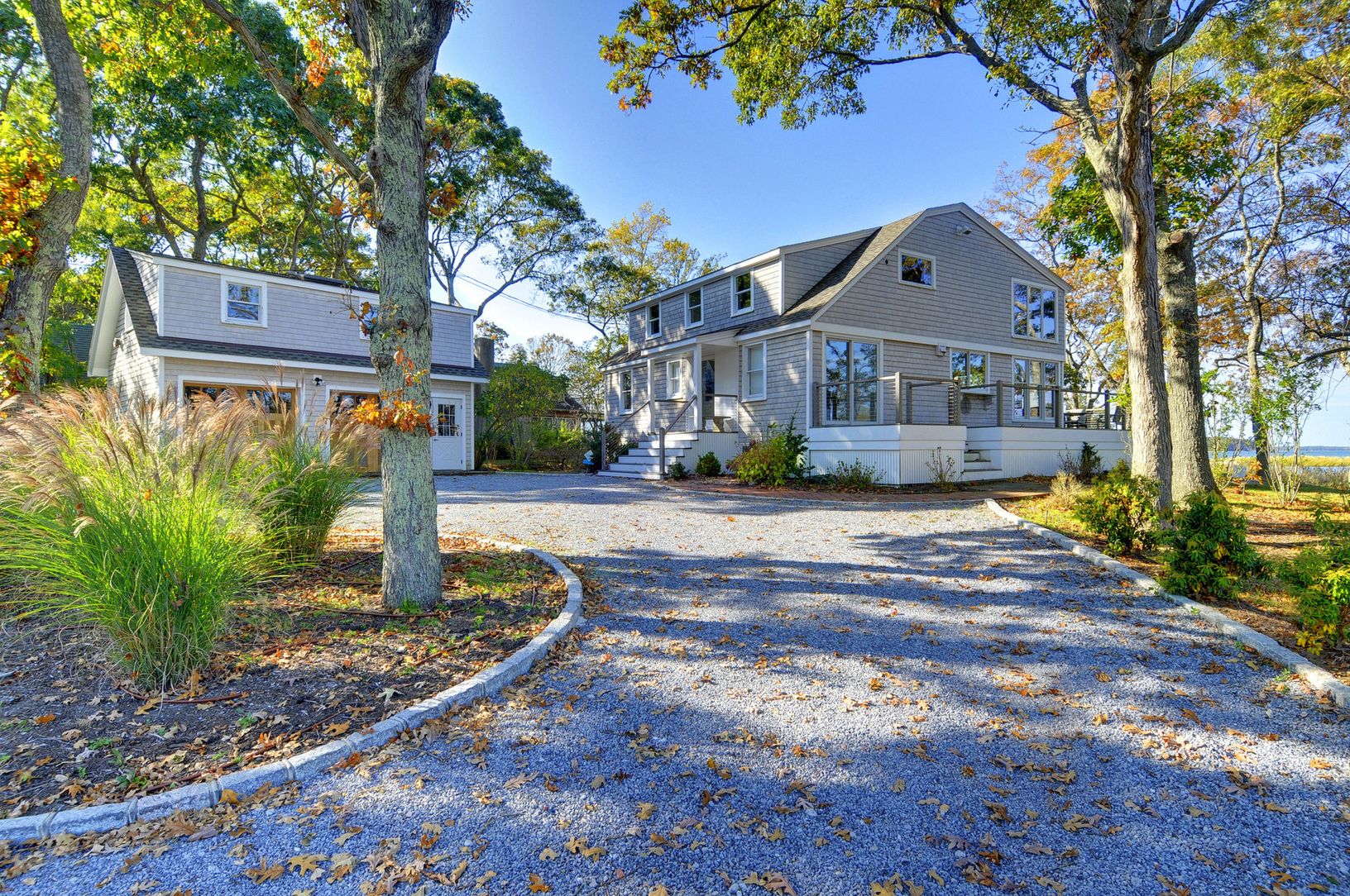 Newly listed and just renovated. This beach cottage has it all! Open floor plan living room, gourmet kitchen, family room/loft, master bedroom suite, plus three guest bedrooms. Situated on 400' of waterfront, on a peninsula with panoramic views of water and adjacent preserved land. Spacious wrap around deck, dock, detached two car garage with plenty of storage space. Incredible views for year round living. Convenient to both Sag Harbor Village