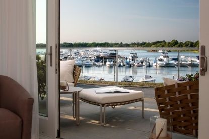 Fully oriented toward the harbor, this loft at 'Harbors Edge is ingeniously designed to provide welcoming common spaces and opportunities for privacy and retreat. The loft's sleek glass doors open onto a terrace overlooking the harbor, where residents can watch boats come and go and enjoy striking sunsets. The great room's gas fireplace serves as a natural gathering place year-round.
