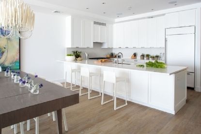 The kitchen opens into the great room, creating a s