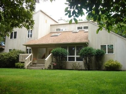 Four bedroom, three bath Sag Harbor contemporary situated on 1.25 acres. Two story with skylights throughout, and sliders to extensive decking. Bright and airy with extensive landscaping. Pool and two car garage.