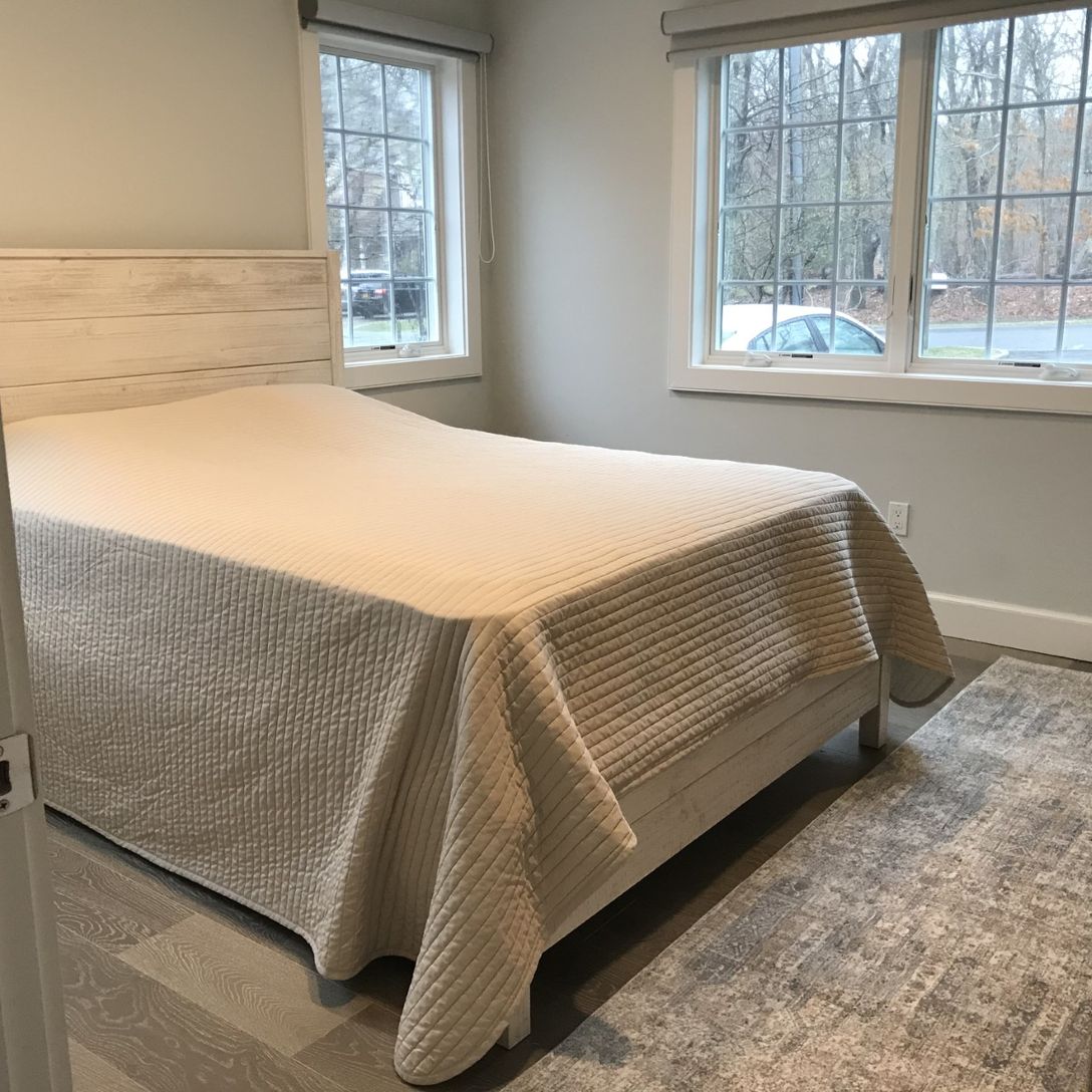 On a quiet street in the waterfront community in Sag Harbor Village, this two-story traditional house built in 2015 is just a few minutes to the village as well as the private community beach. The home backs up to reserve and offers five bedrooms and three and a half baths in 2,204 +/- sq. ft. Wide plank wood flooring and a serene gray and white color scheme are found throughout. Enter light-filled, open living areas flowing among the two-stor