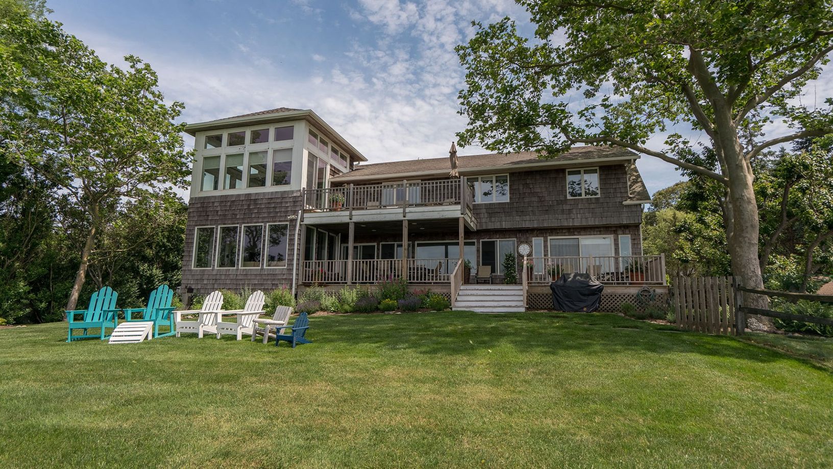 Wake each morning to sweeping views of the Peconic Bay. With six-and-a-half baths and six restful bedrooms, plus a convertible 7th office/bedroom with queen-size sofabed, there’s more than enough space to sleep twelve comfortably.
