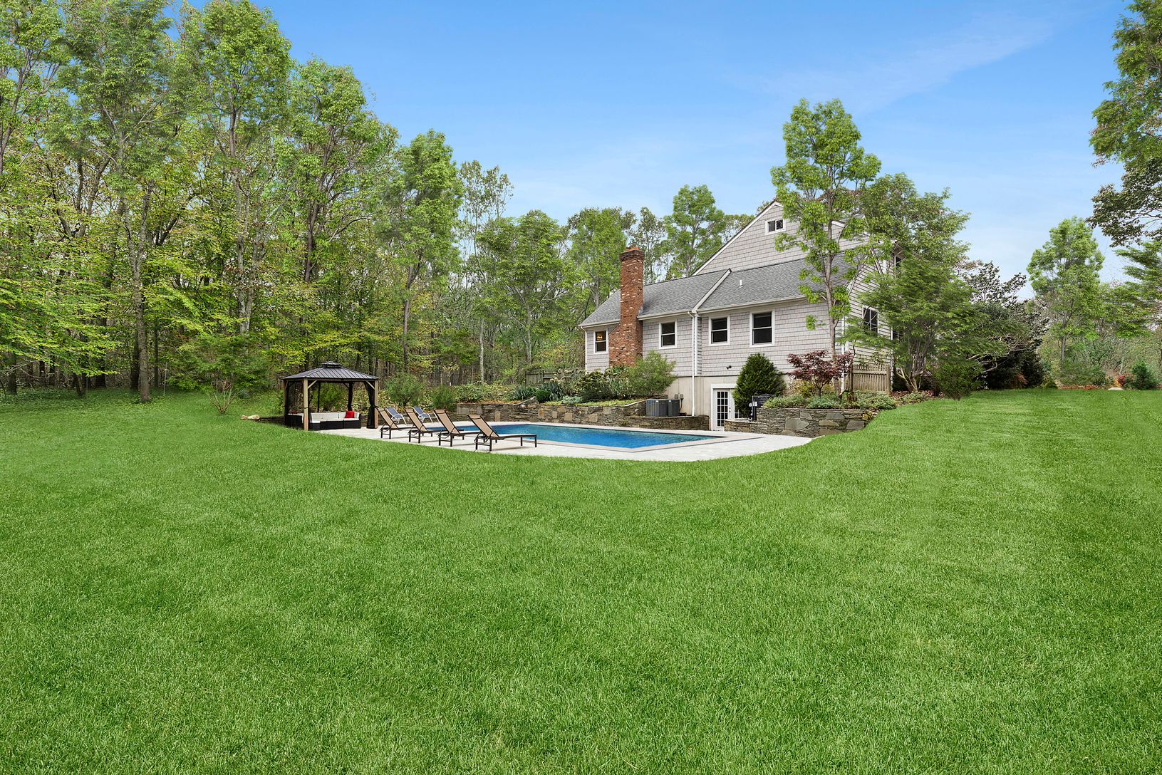 This 6BR/5.5Bath home sits on a private 1+ acre private setting, just 1.0 miles to Sag Harbor Village and 2.5 miles to Bridgehampton, for total convenience. It's now available for August 13- LD at $28k. This well landscaped property, largely surrounded by reserve, is setup for all seasons. There is extensive lawn, and a large pool area with patios and cabana. They face South for the best sunlight. The back yard also includes a wood burning sto