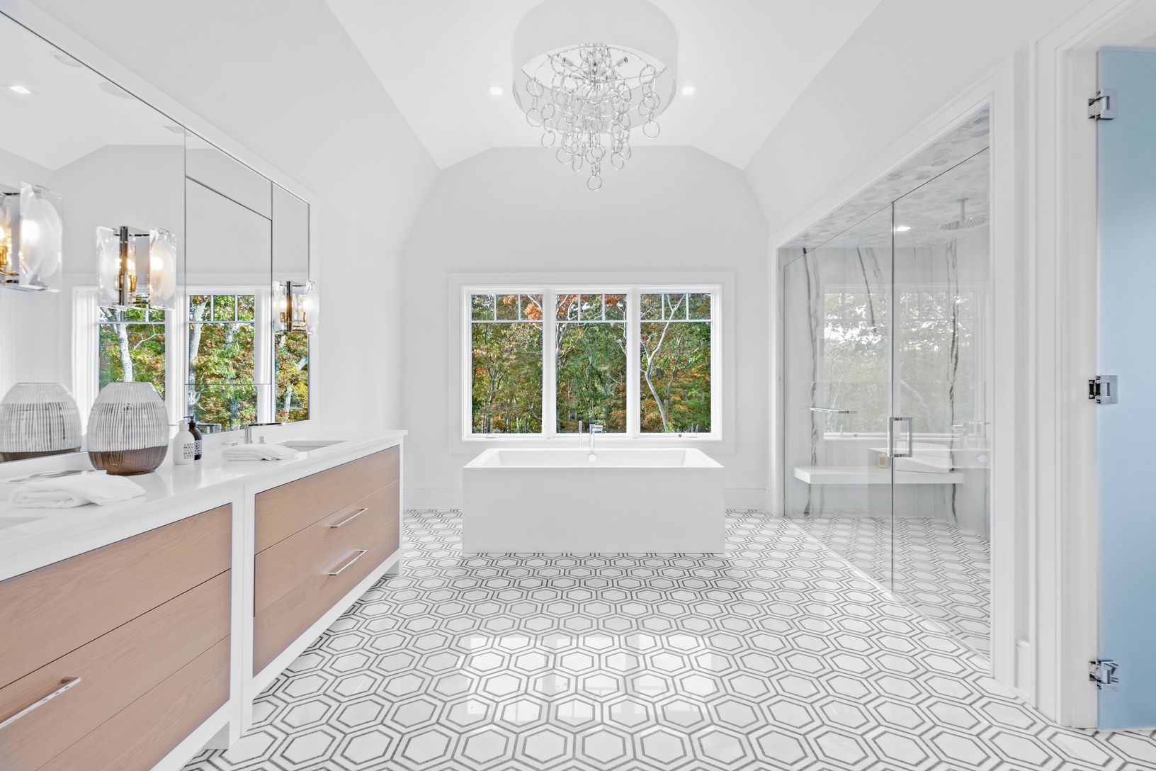 The 5-Acre private estate with Tennis is in a league of its own in Sag Harbor. Any Two Weeks between MD and July 15th for $100,000 and other terms available. Be the first to rent this magnificent new build with brand new designer art and furniture. Perched on its own hill, this luxurious estate overlooks 278 acres of manicured golf course and reserve on three sides, for privacy and rolling vistas. The expansive backyard by Marders is bermed