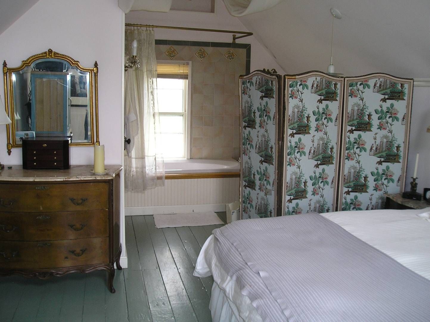 This charming classic two bedroom, two bathroom Victorian is in the heart of Sag Harbor Village with views of Otter Pond. Downstairs features a kitchen with office, dining room, living room with gas fireplace and pull out couch, bedroom and a full bath with club foot tub and shower. Upstairs is a light filled loft bedroom with a full bath including tub and shower. A flower filled back porch has a lounge and dining area with BBQ overlooking the