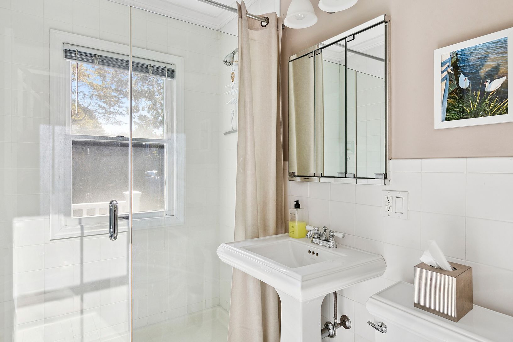 Experience Sag Harbor's winter beauty in this exceptional waterfront retreat. As temperatures drop, this serene half-acre property transforms into a tranquil haven, ideal for observing snowy sunsets over Sag Harbor Cove while remaining close to the village. The architecturally charming home, with three well-appointed bedrooms and three baths, offers panoramic water views framed by bare branches and winter light from every room. Gather in the s