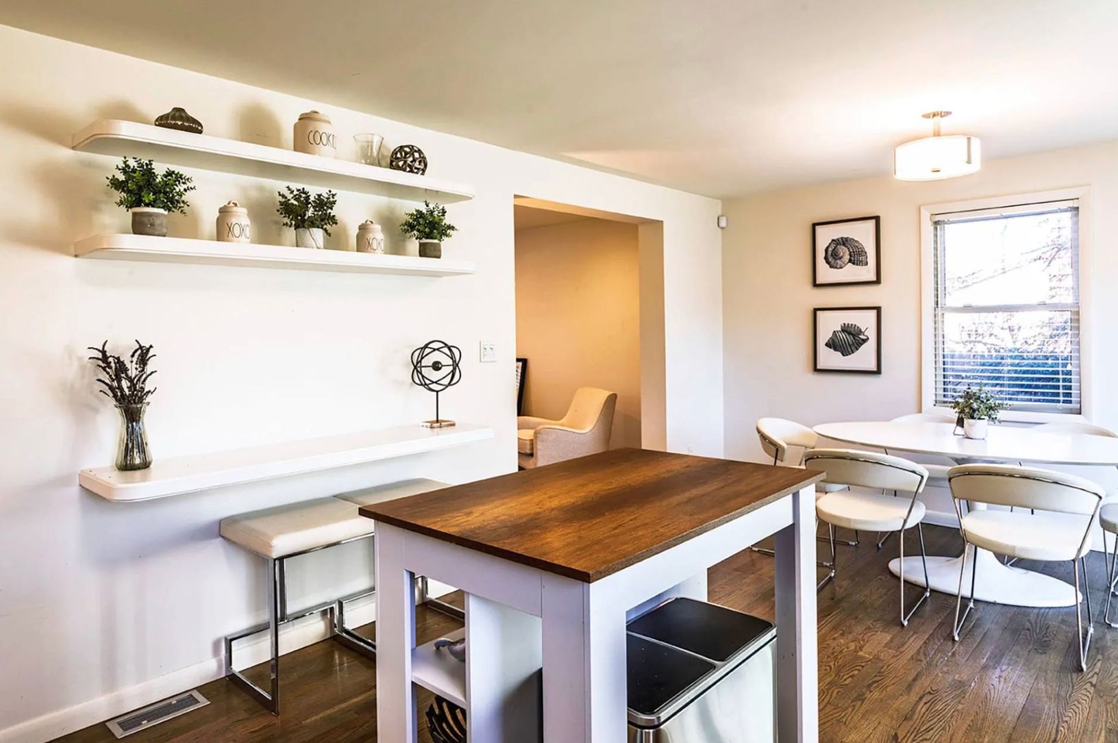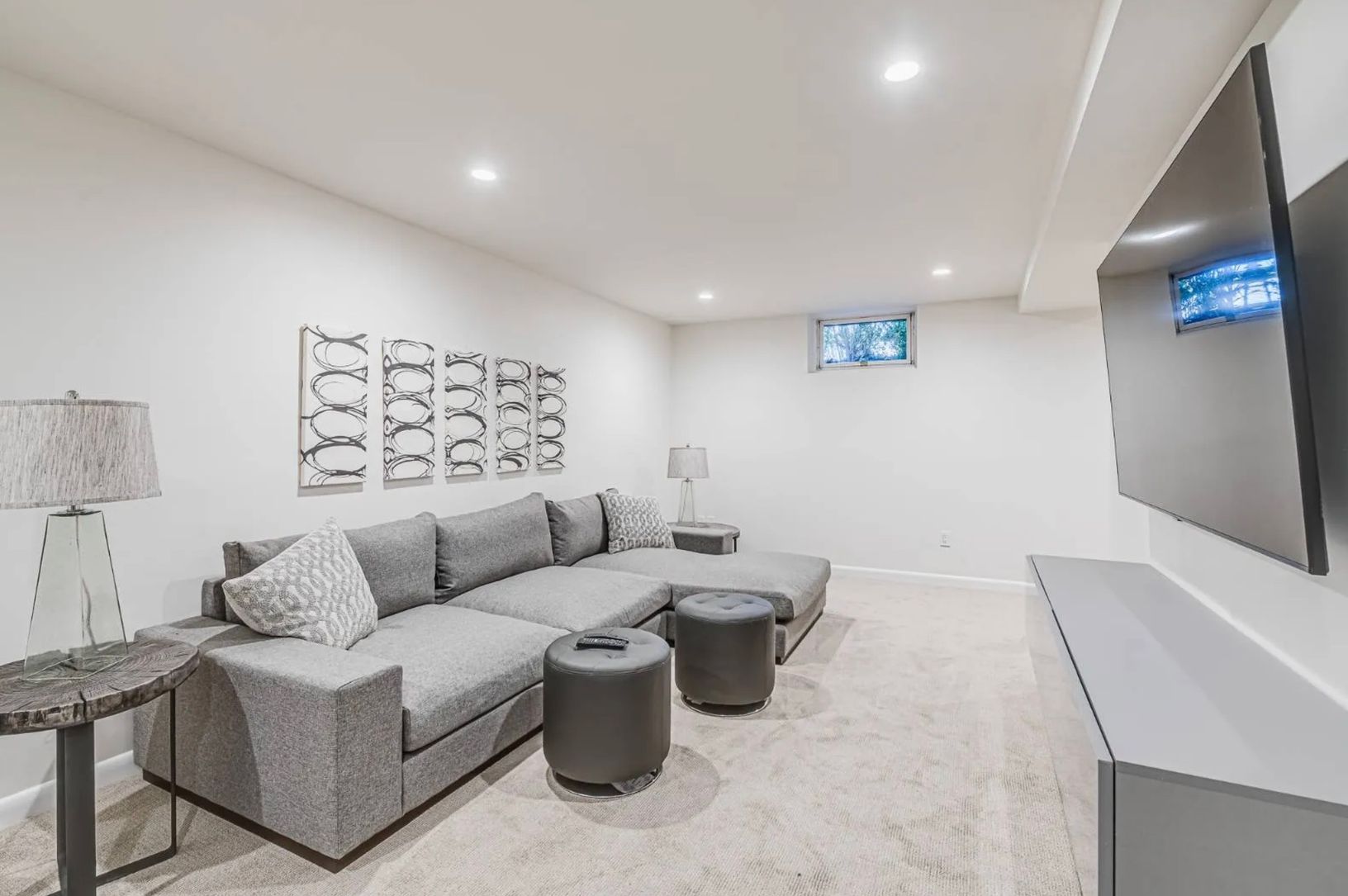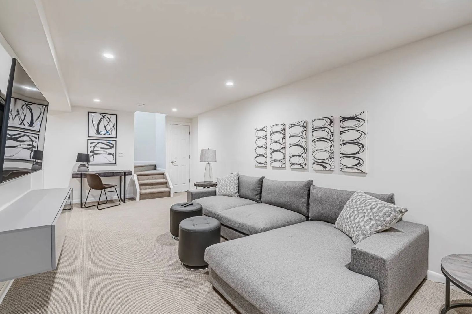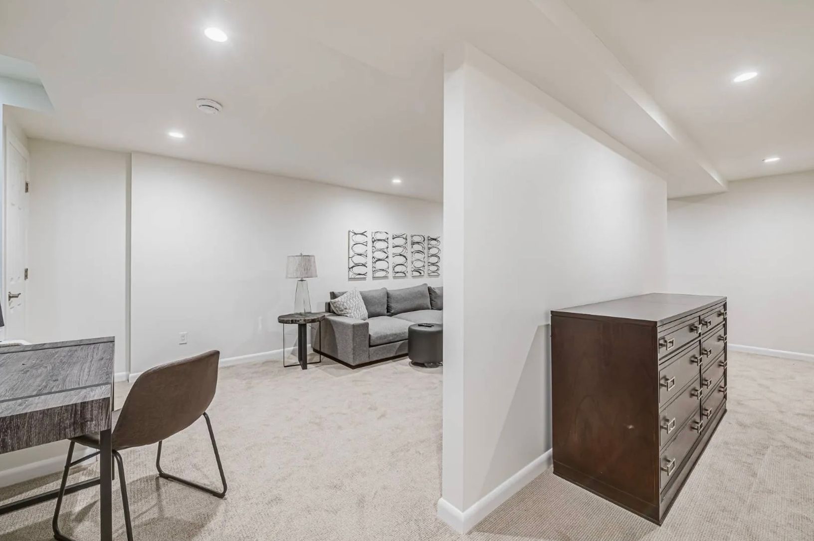 The layout is ideal for guests, with a first-floor full bathroom and flex