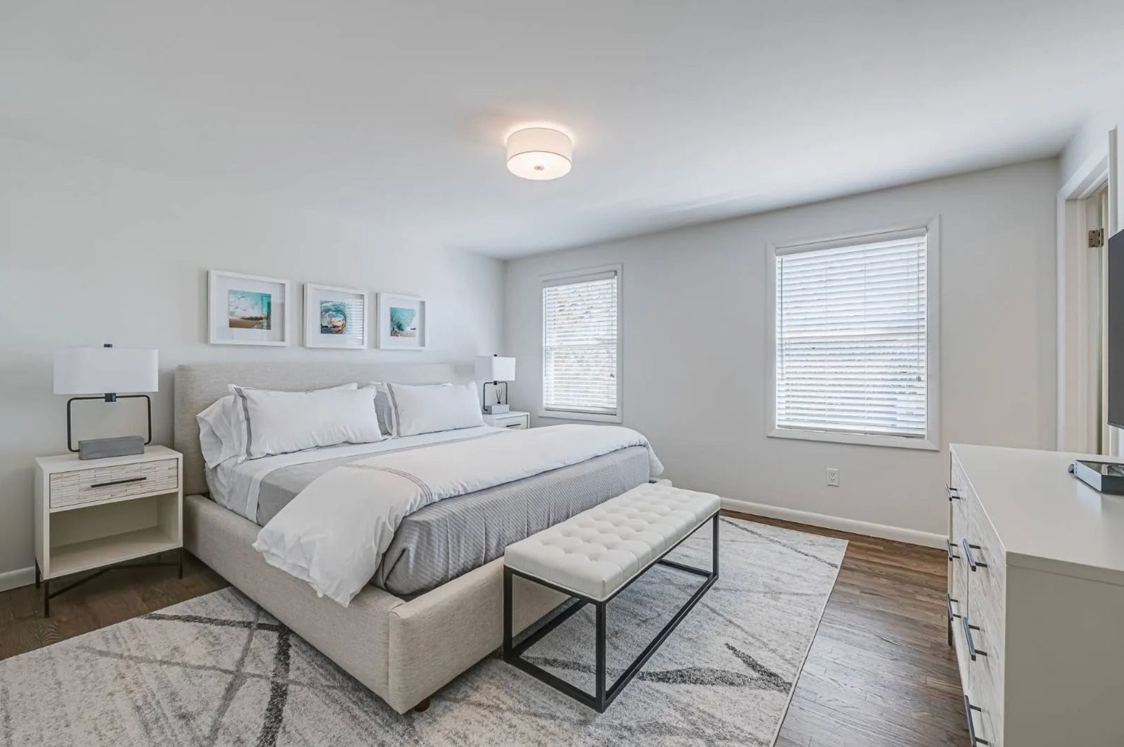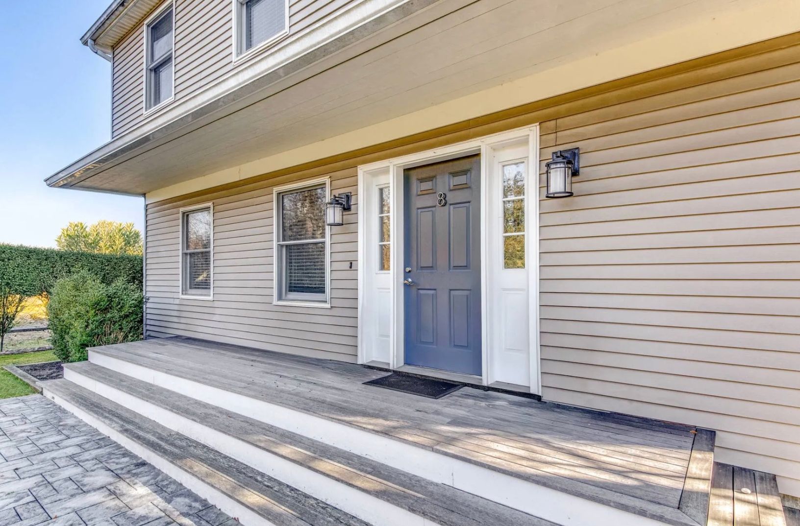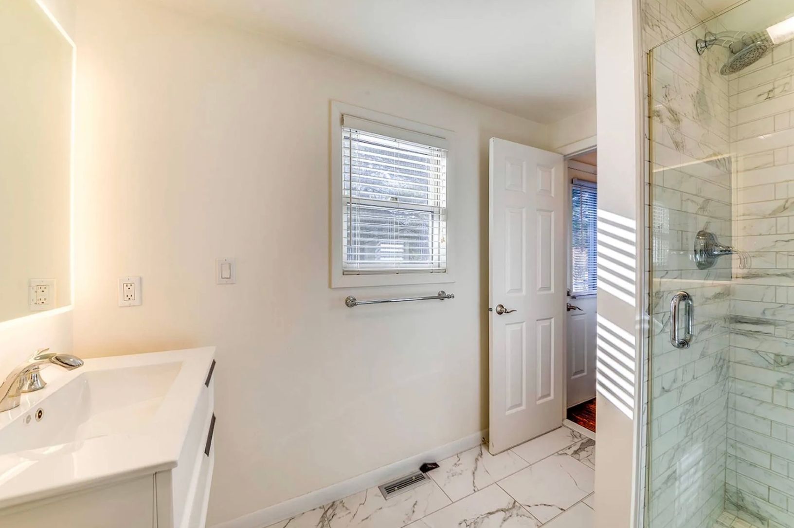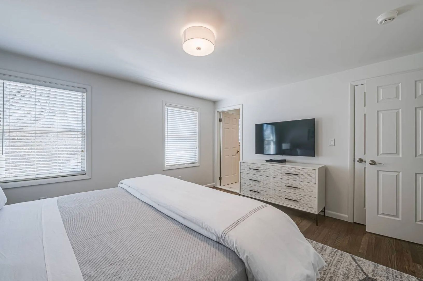 The layout is ideal for guests, with a first-floor full bathroom and flex