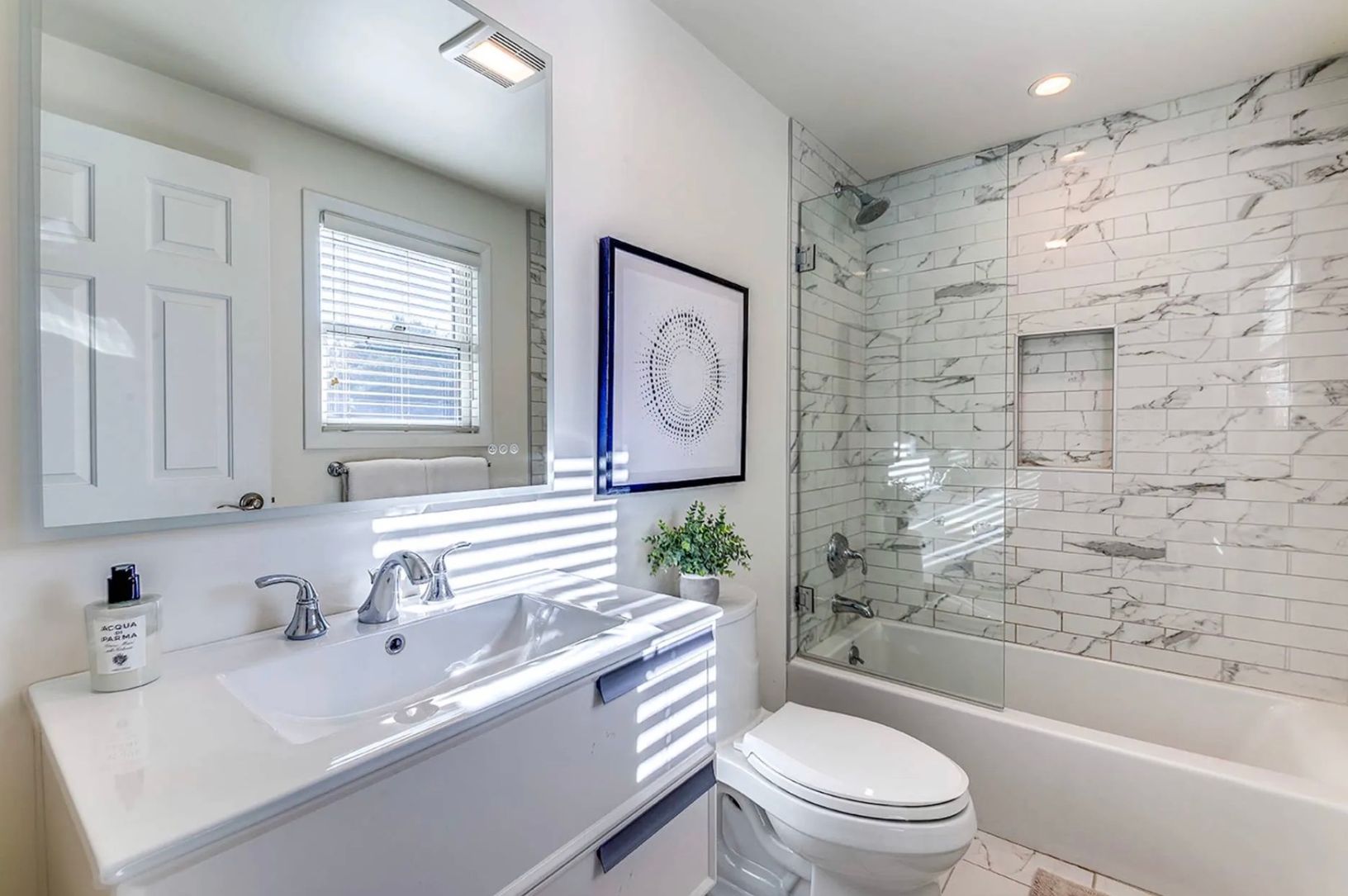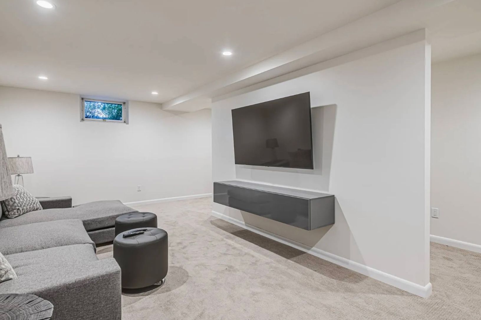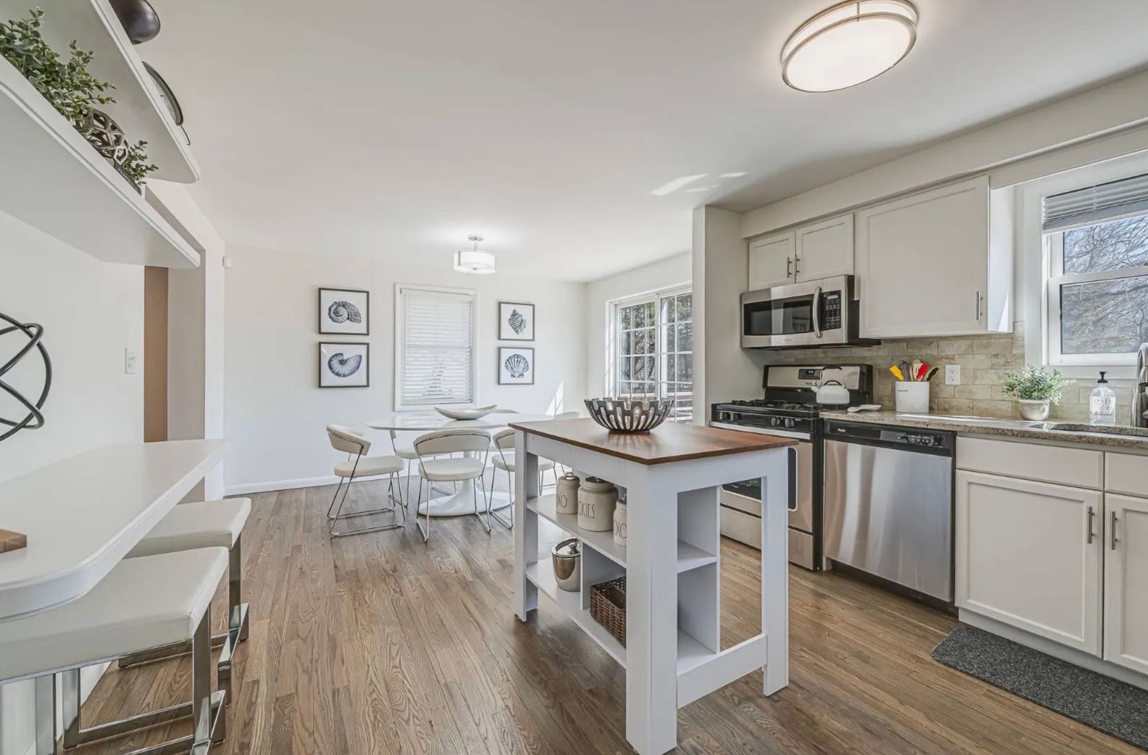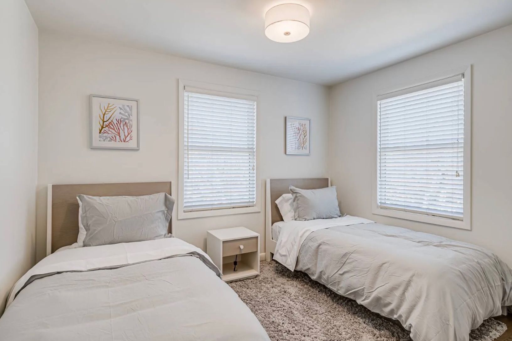 The layout is ideal for guests, with a first-floor full bathroom and flex