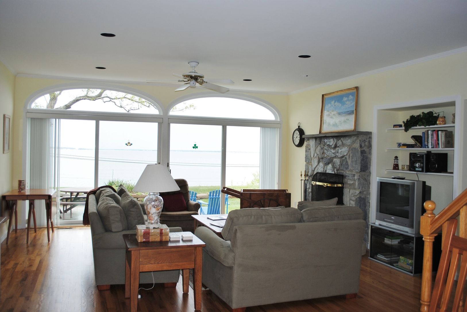 This furnished traditional offers views of Noyac Bay. The house features a living room with fireplace; kitchen with breakfast area; three bedrooms (including first-floor master) and three baths. Across the street from Long Beach.