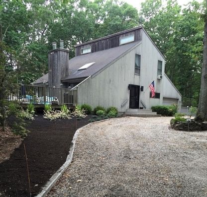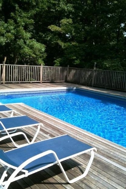 Not far from Long Beach and a few miles to the village of Sag Harbor, this pristine three bedroom, two bath is on a secluded 1.8 acres with a heated pool, hot tub and a spacious deck. There is a loft area that sleeps two providing extra space. The open floor plan with living room and dining has cathedral ceilings and a wood burning fireplace. Ceiling fans and air conditioning units for each bedroom. Maintenance is minimal since the pool is