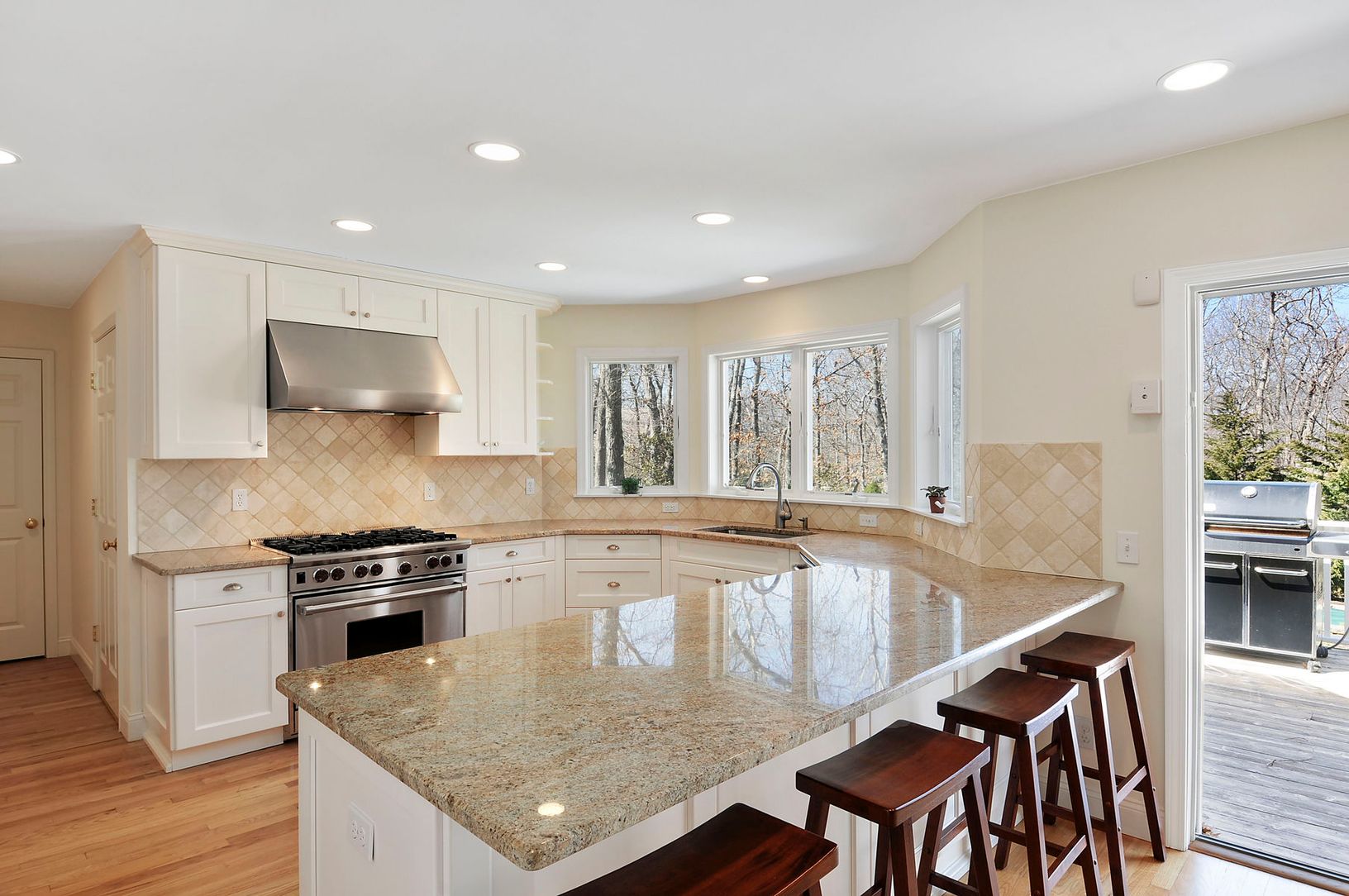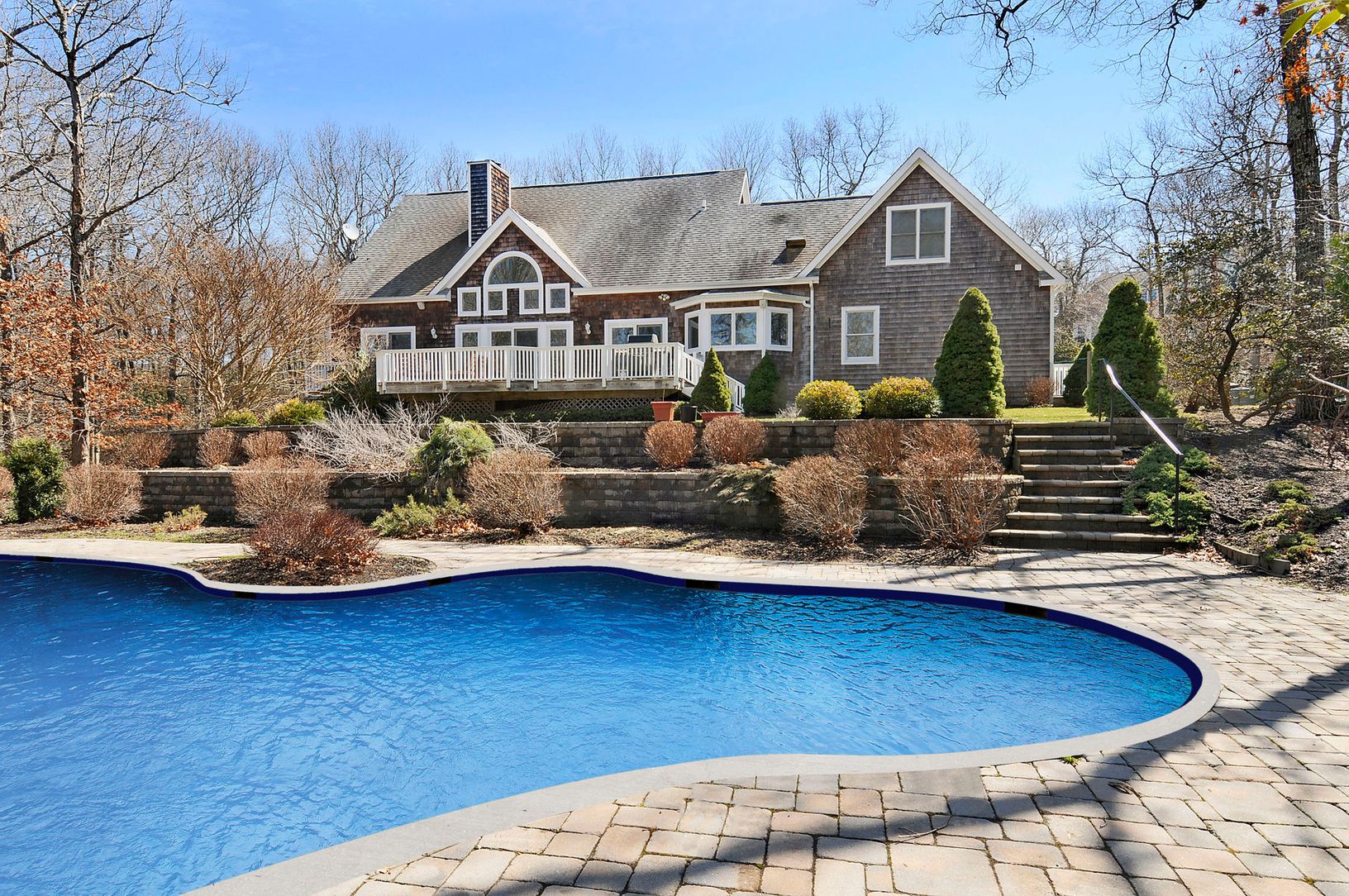 Freshly decorated in Beach House favorites is this five-bedroom, four and one half-bath home with heated pool and deck on one acre +/-. The kitchen is new and perfect for any chef. There is a sound system inside and outside and a nice BBQ. The location is great for going to bay beaches and the villages of Sag Harbor or Bridgehampton horse country events. Deerfield Road is a nice drive to the ocean beaches.