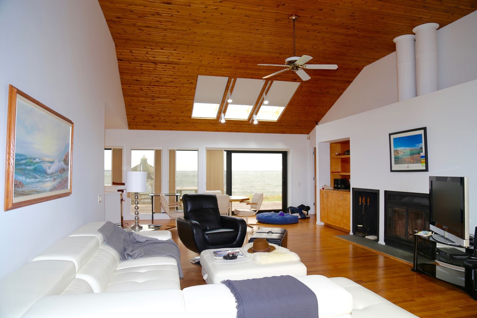 This striking Contemporary has abundant floor-to-ceiling glass which makes the most of the breathtaking bay views. Three bedrooms, three full bathrooms, a great open living area, and a gunite pool complete this great summer rental. Updated for 2020.