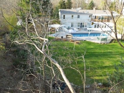 Renovated modern split level on a hill with views. This 4 bedroom, 3 full bath house has a wet bar, kitchen, cabana and 1200 sq ft gym overlooking the pool. 1500 sf deck with 2 pergolas and outside dry bar. Just a few miles outside Sag Harbor Village.