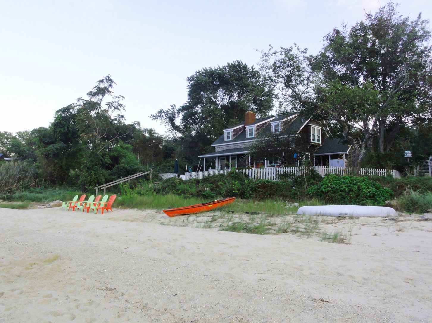 Down the end of a long drive off the beaten path in Sag Harbor Village sits this picture perfect beach house with its own private beach. Swim, fish, kayak, sail or just enjoy the beautiful sunsets and vistas from the covered porch overlooking Sag Harbor, North Haven and Shelter Island. The house has three bedrooms and a sleeping porch, two and one-half baths, a country kitchen with eating area. The décor is warm and comfortable. A walk way t