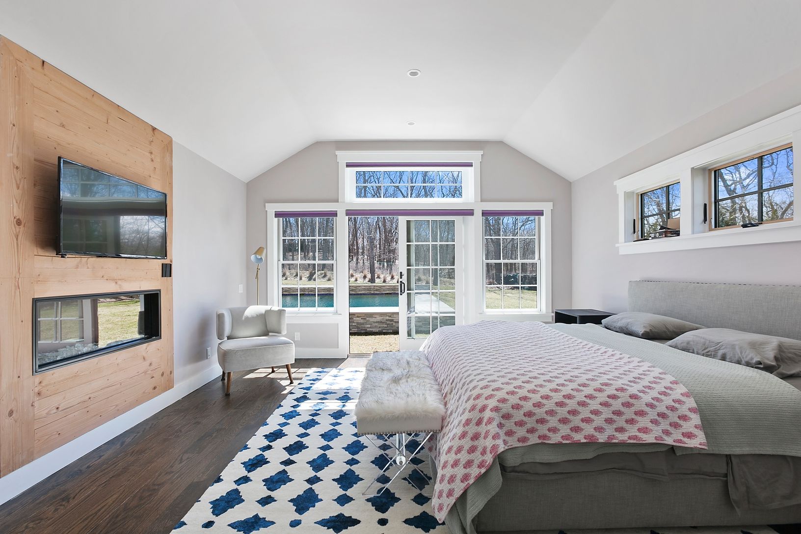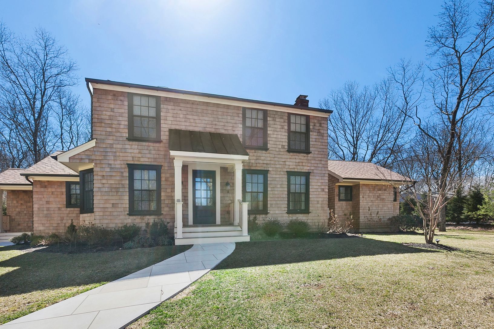 Located just minutes to the heart of the Village of Sag Harbor, this classy and stylish property has just been completed. All new furniture and very hip modern decor. Great floor plan, living room with fireplace, doors to adjoining den with large flat screen TV, kitchen with eating area, separate dining room, powder room/pool bath and master suite with fireplace complete the first floor. Upstairs are three guest suites. Large covered entertain