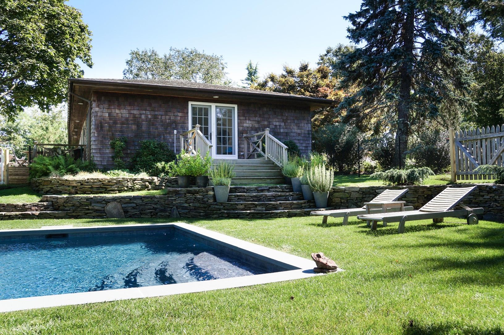 Relaxing view of pond and harbor, perfect for entertaining family and friends in this contemporary home with three bedrooms and an additional bedroom in the lower level, two and one half baths, open living dining with sliders to large deck all with water views. New gunite water view pool. New dock so you can kayak out to the harbor. The perfect vacation spot. Swim, kayak and minutes to Sag Harbor village.