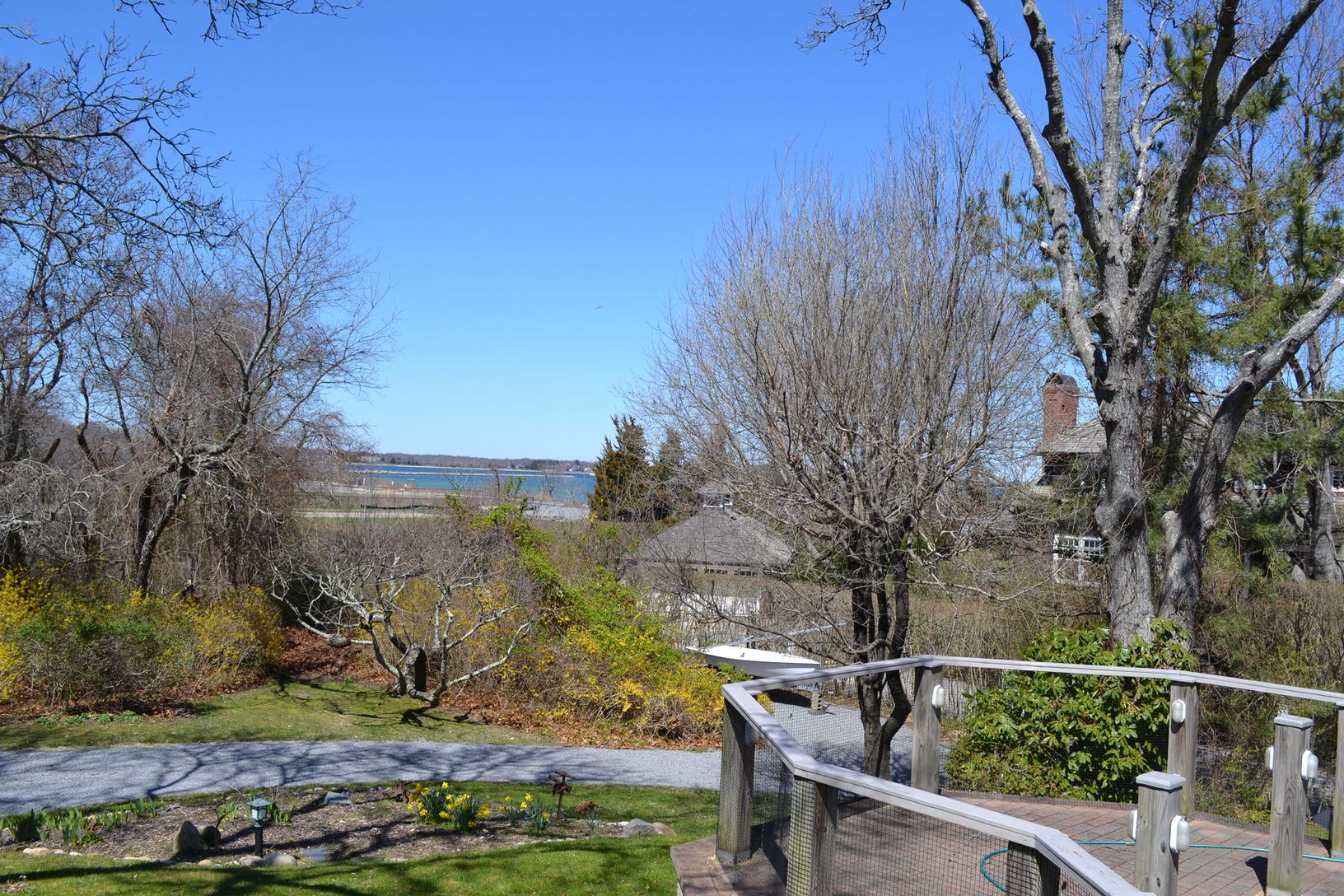 Artists' and architects' contemporary home on a private road adjacent to the village beach. Three minute drive to Main Street and a two minute walk to the private beach. 2700 square foot home with 5 bedroom and 3.5 baths. On a private hedge-lined half acre with views of the harbor, beach and bay. Granite kitchen with Viking stove, Jacuzzi tub and double shower with steam. Cathedral ceilings, skylights and decks abound. Central air and internet