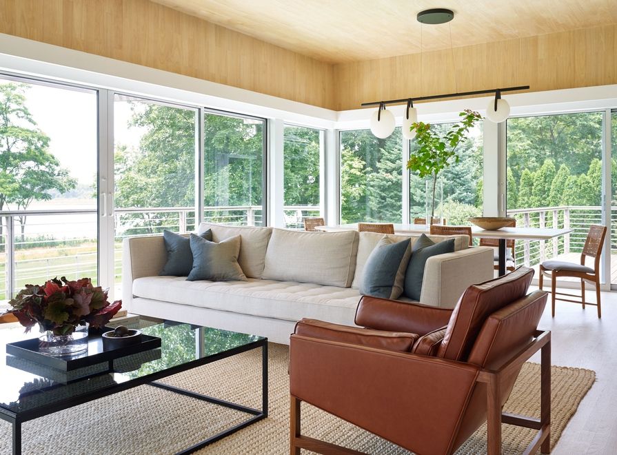 An idyllic west facing waterfront setting with a "great lawn" and privacy situated on 3.4 +/- acres with 366 +/- sq. ft. of frontage on Noyac Creek. A chic and stylish three-bedroom, four and one-half bath contemporary home with a private deep-water dock completely renovated with interiors by renowned New York architect David Mann. On the homes upper level, the living room, den, dining area and eat-in kitchen benefit from an open plan that per