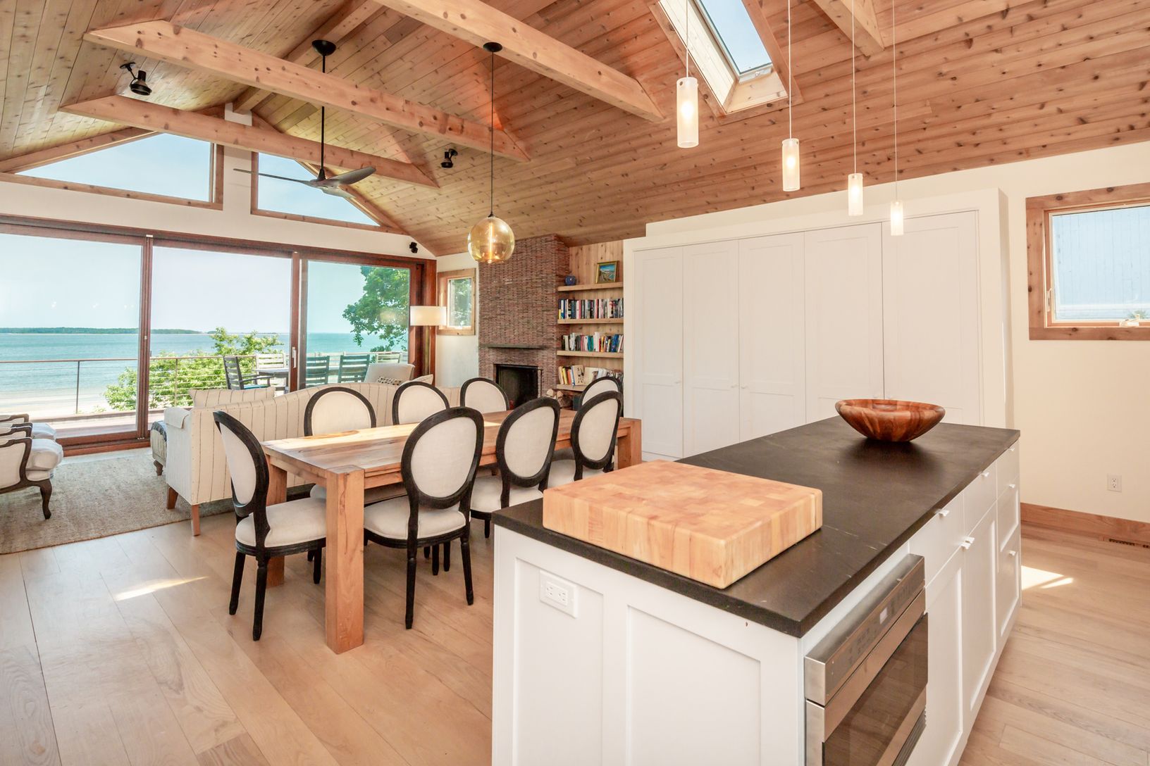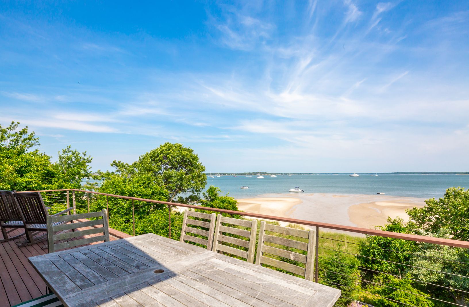 Beautiful 4 bedroom beach house overlooking Sag Harbor bay. Views galore - watch the sail boats cruise by all day from your deck or pop you toes in the sandy beach directly in front that stretches all the way to Barcelona Point .... Close to Village for amazing restaurants, stores and marinas. With large master and three guest rooms, open plan kitchen living and dining with extensive views out to Bay. Separate spacious living room and lowe