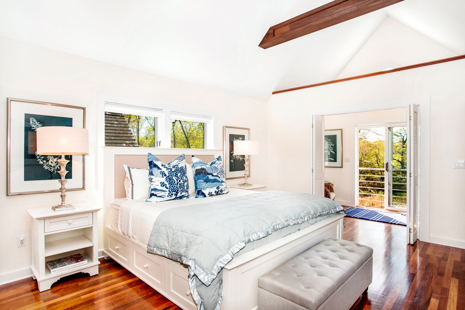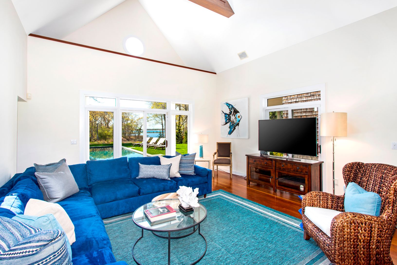 Newly available as a rental, this gated 5 bedroom, 4 bath home in North Haven Point offers beautiful sunsets over Genet Creek to Shelter Island. The first floor has a master suite, two guest rooms that share a bath, formal dining area, living room, kitchen, and den. Upstairs is a second master suite with water views and a large deck off the master bath. Brand new heated gunite pool and spa and plenty of outdoor space for entertaining. Spectacu