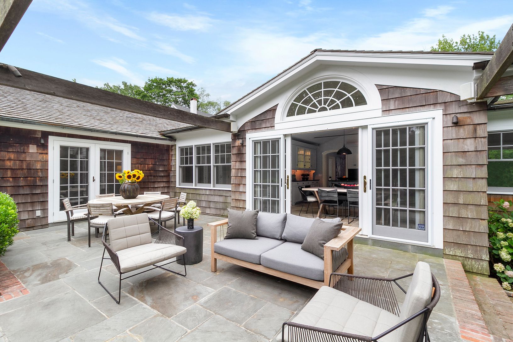 This newly renovated home in the heart of Sag Harbor Village is owned and decorated by an interior designer, and features four bedrooms, three bathrooms, a beautiful modern kitchen, formal dining and a first floor master bedroom. Enter outside to the gardens and enjoy dining on the bluestone patio surrounded by outdoor lighting and speakers.