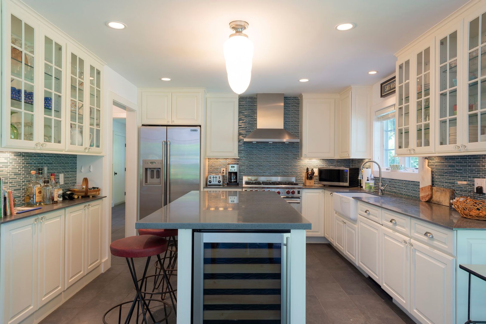 Designer's own newly renovated home is the perfect blend of village charm and modern amenities. Located close to the beach and the village, the house has an open floor plan that makes summer entertaining ideal, with an easy flow to back deck and tastefully landscaped backyard. This 4 bedroom, 3 1/2 bath has it all: large spacious and light-filled bedrooms, modern designer bathrooms; fully-loaded gourmet kitchen with top-of-the-line appliances