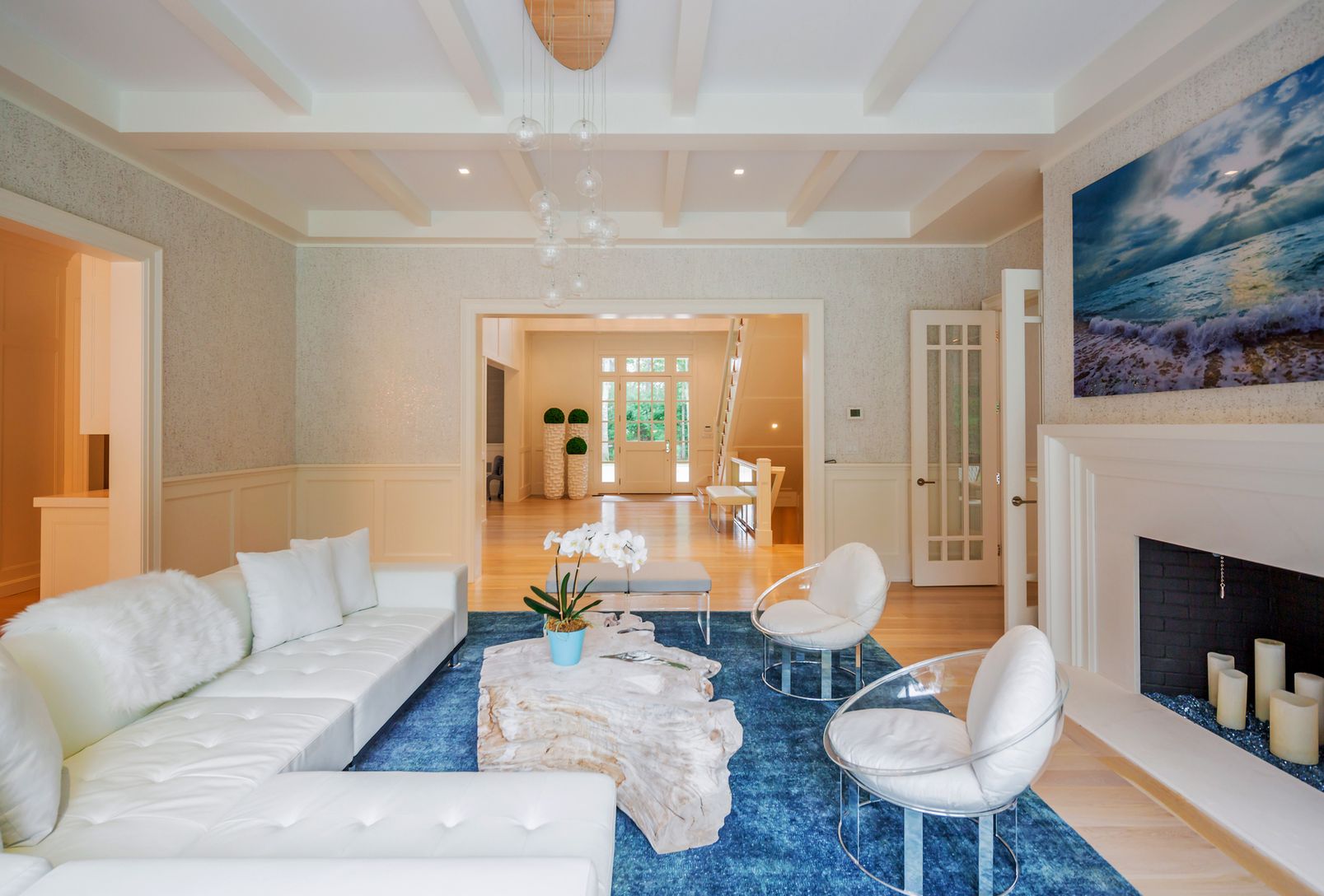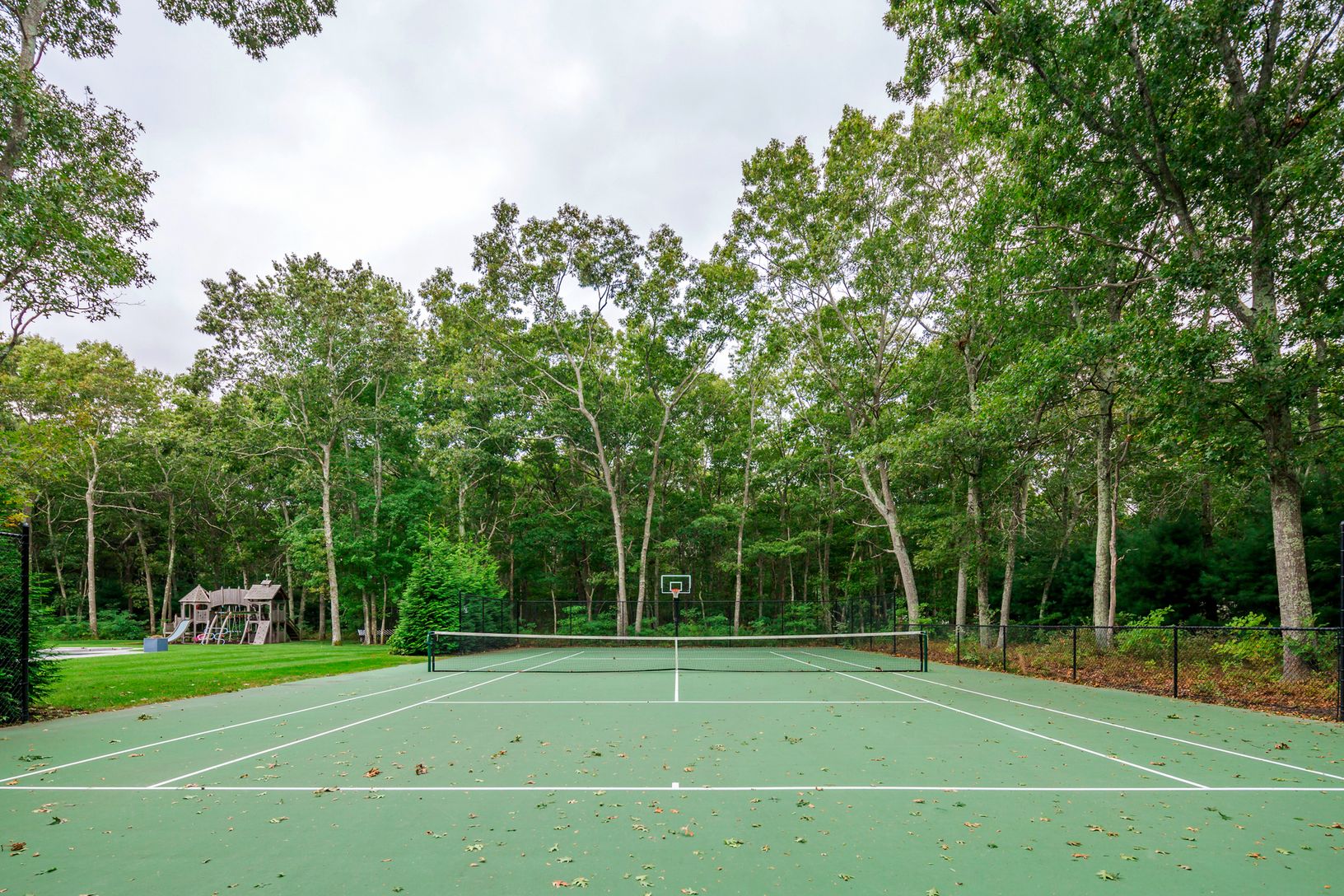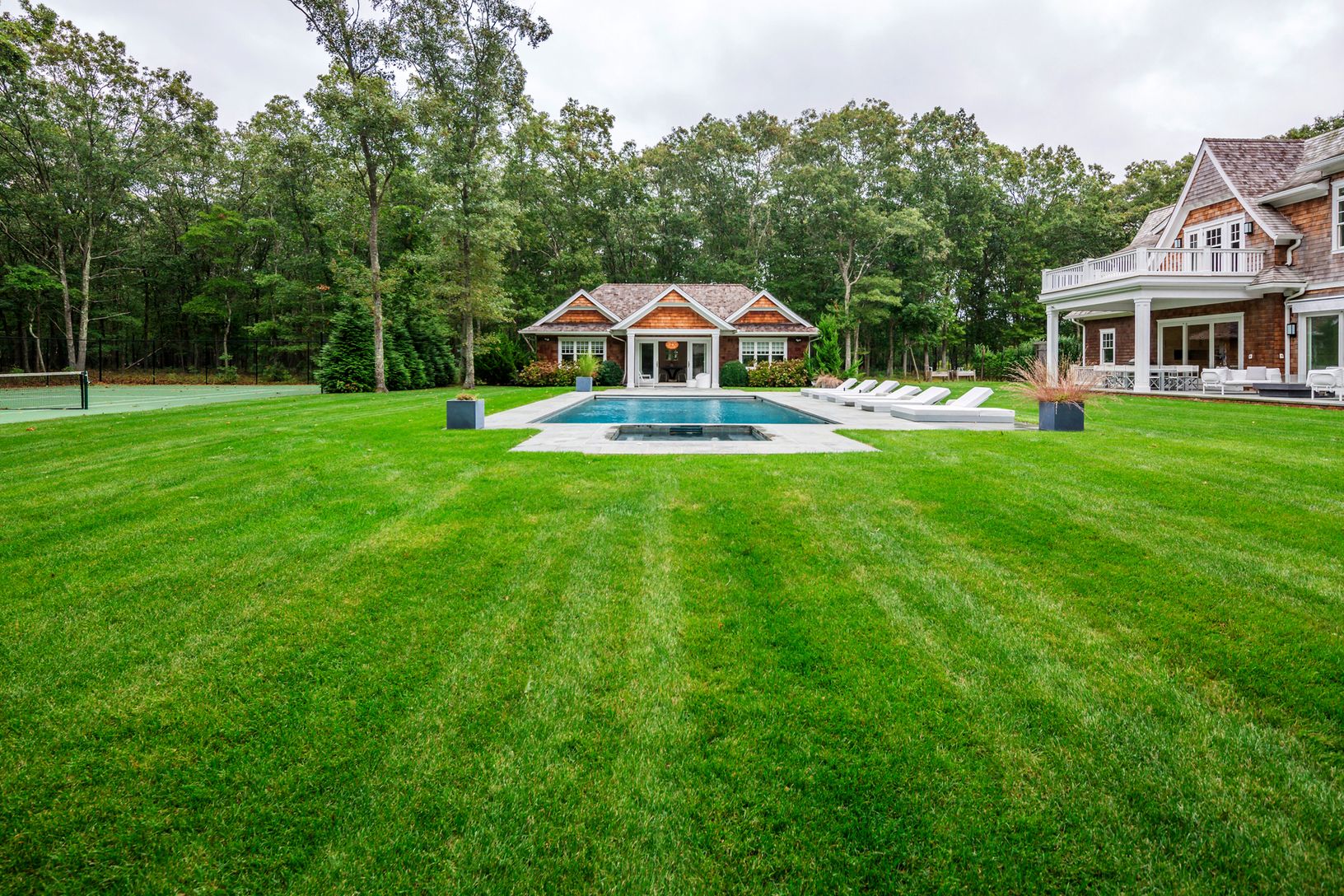 Set on a secluded 3-acre flag lot in Sagaponack north minutes from Wolffer Estate Vineyard and Sagg Main Beach, this recently constructed 5,500 square foot 7 bedroom, 7.5 bath shingled, custom traditional by Farrell Building Company features a heated gunite pool with electric cover and spa, oversized pool house, hardcourt tennis, and attached 2-car garage. A bright double-height foyer with raised paneling and glass balustrades leads to a great