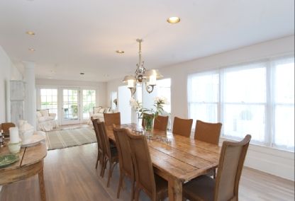 In a very private and enchanting south of the highway location, this dramatic 4 bedroom, 3 bath house presides over an impeccably landscaped 1.4+/- acre property. Beyond the graceful entry foyer, there is an impressive living room with 3 double-height walls of glass, fireplace and exposed beams. A fine kitchen with breakfast area; large dining room and a 2nd floor dedicated to the master suite. Outside, the entertaining space continues, with a