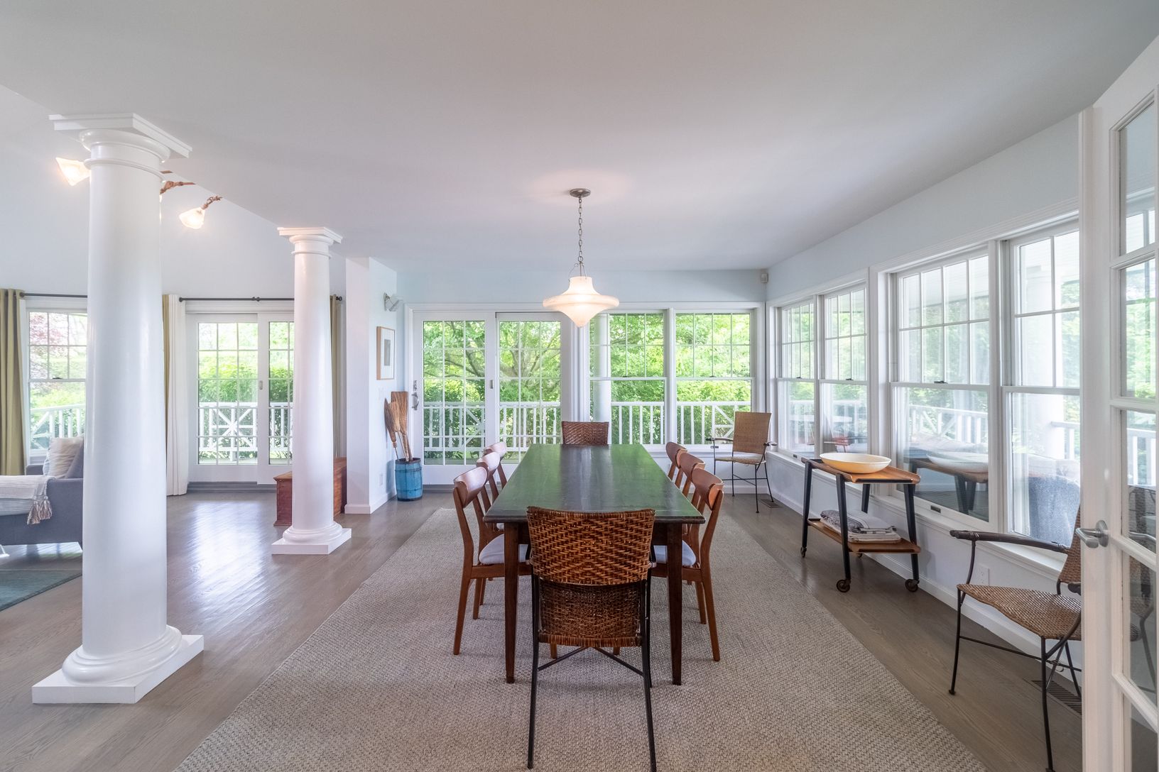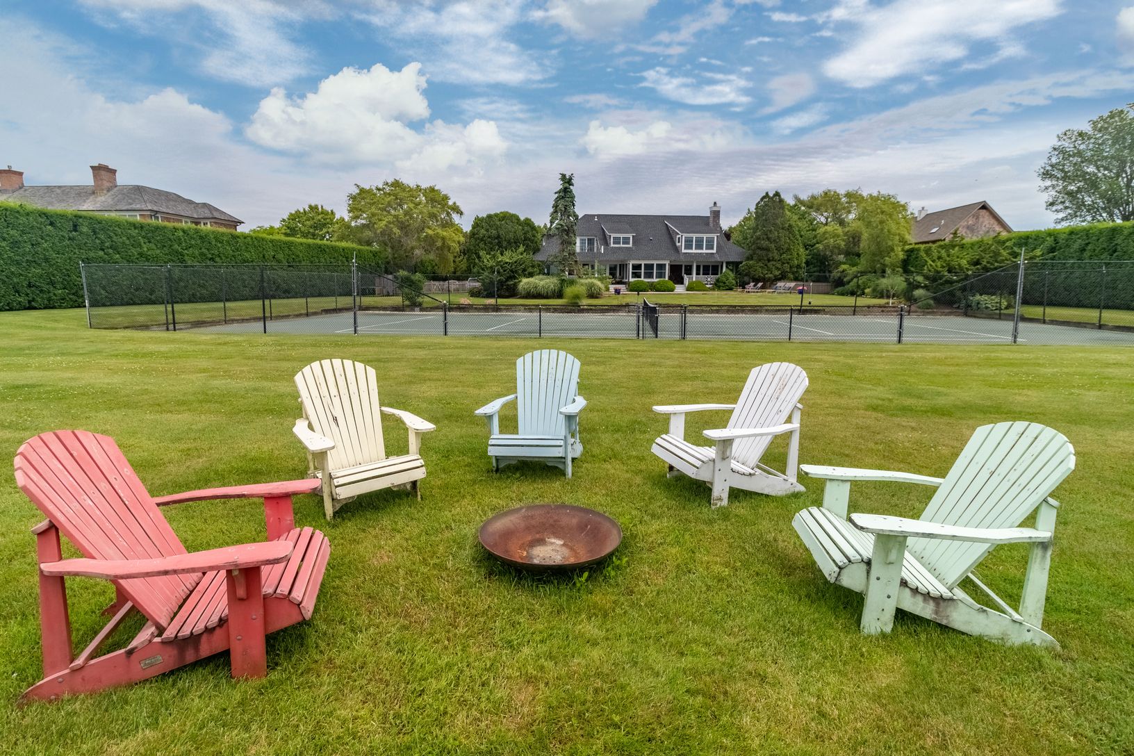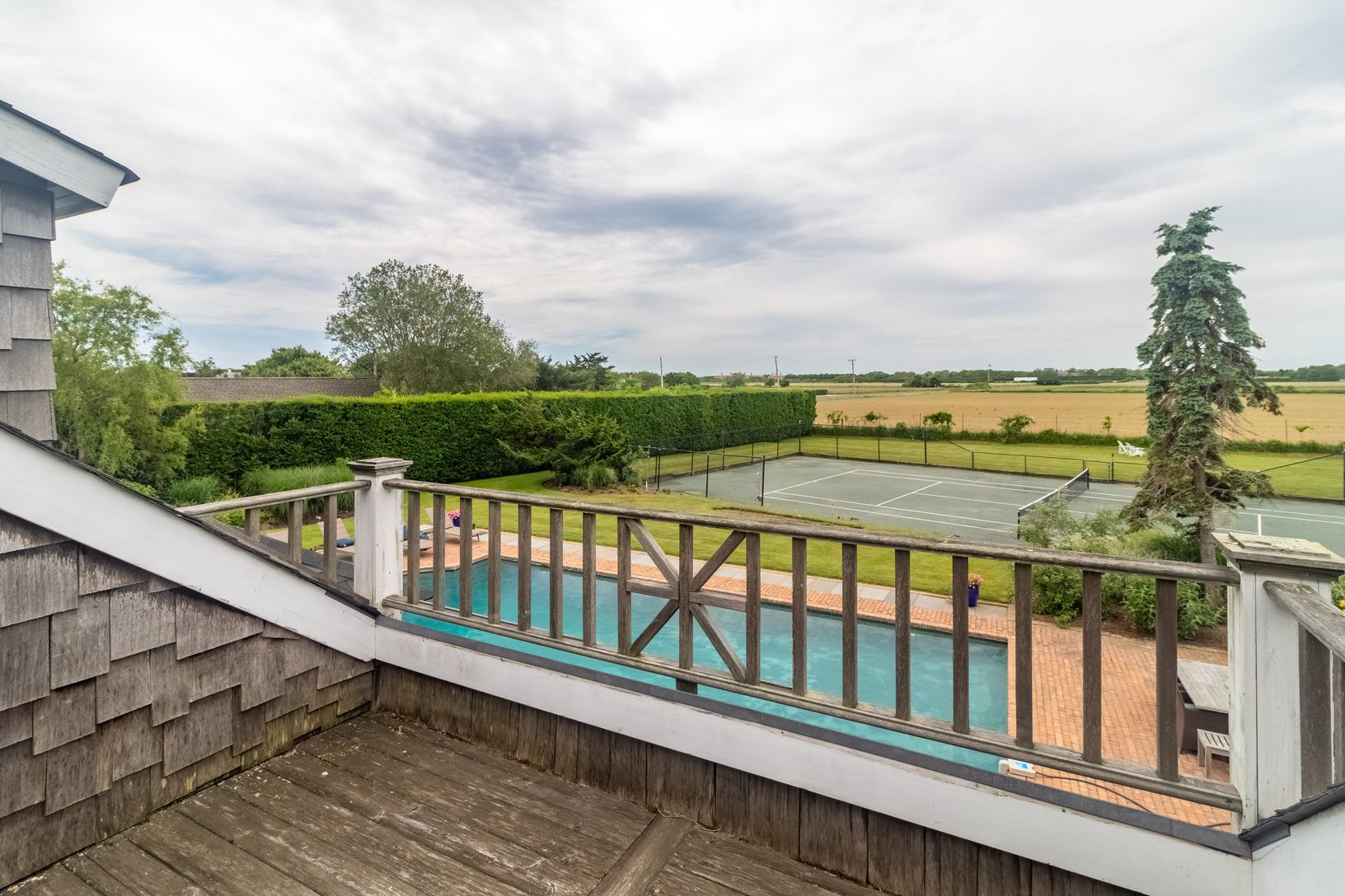 Pristine, elegant and comfortable first time rental. Freshly renovated and beautifully furnished 4 bedroom home on Erica's Lane, a quiet street one block off ocean beach. Hard to find a more perfect spot. After a relaxing day at the beach/pool, enjoy the sybaritic atmosphere of the wraparound porch overlooking a 100-acre field that offers dramatic sunsets and ocean breezes. Har-tru tennis, heated gunite pool, fire pit surrounded by Adirond
