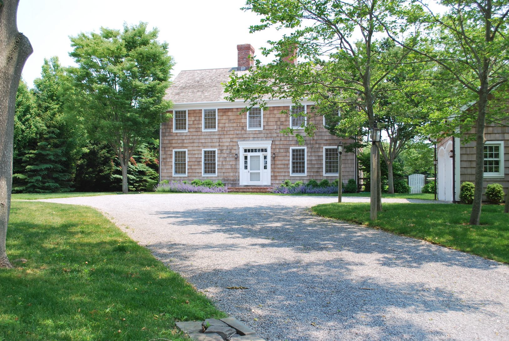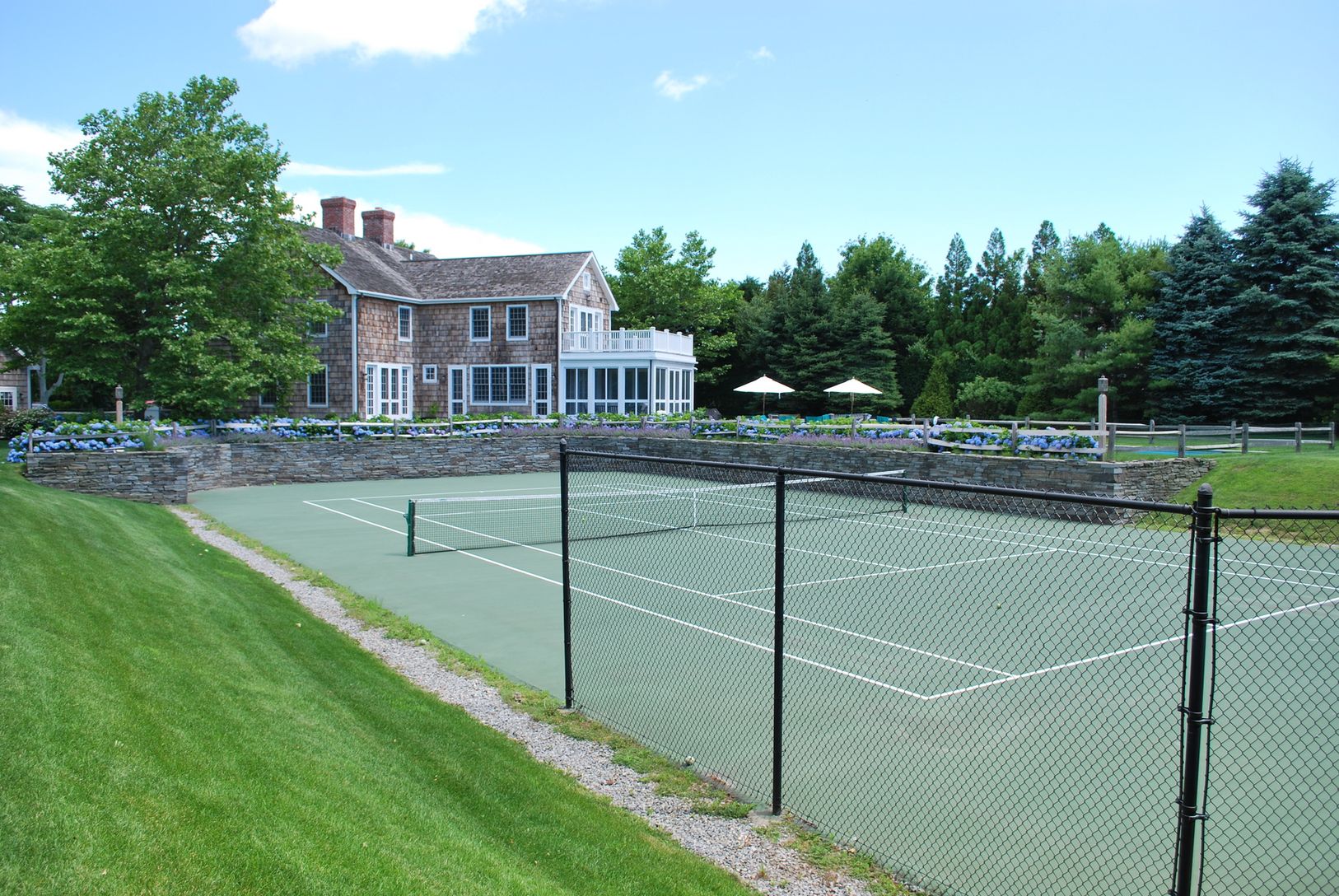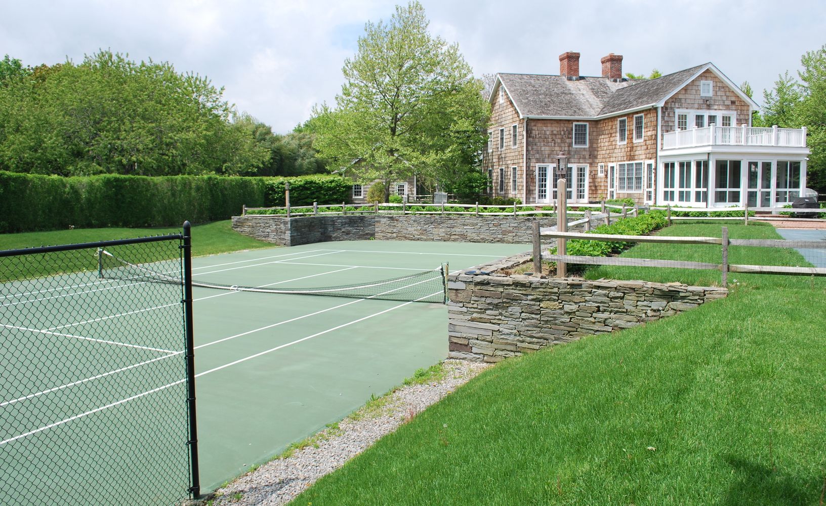 Set on 1.3 acres and down a hidden drive this great traditional offers 4 bedrooms, a library, formal dining, 2 wood-burning fireplaces and the sun-filled chef's kitchen with attached screened porch. Well proportioned bedrooms each with baths and hardwood floors throughout. The grounds include an 18x45 gunite pool, sunken all-weather tennis court and separate 2-car garage. Unique opportunity to own this wonderful home with room to add!