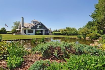 With sleek, loft-like space, light, bright traditional on abundant ultra private 1.59+/- acres in premiere Sagaponack south location near ocean beaches along a hedged flag drive. Four bedrooms, 4 bathrooms, large open living and dining, chef's kitchen, 2-car garage. Heated gunite pool, lush landscaping showcasing large scenic man-made pond.