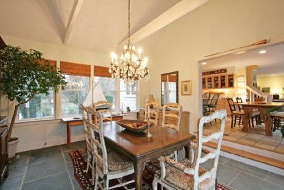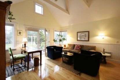 Sited on 2+ acres of beautifully landscaped grounds with mature specimen trees and fields of wildflowers, is a 3,000 +/- sq. ft. shingled Cape featuring 4 bedrooms, including first floor master and separate guest suite, 3.5 baths, eat-in country kitchen, formal dining room, and bright living room with fireplace and French doors giving to patio and expansive views. Wide plank wood flooring, 2 fireplaces, and double height beamed ceiling in livi