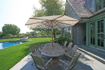 In one of the most coveted Sagaponack south locations, impeccably designed shingled traditional home, newly appointed, customized to the highest level with understated elegance. Exquisite finishes and details, bucolic pond views across manicured gardens from virtually every room, 7 luxurious bedrooms, 7 full/one half baths, cathedral beamed living room surrounded by covered verandas, grand kitchen with every amenity including one of four firep