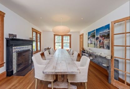 Classic 4300+/- sq. ft. farmhouse with understated elegance and the finest modern finishes and period details on 1+ acre of manicured grounds. Five bedrooms in total, including master suite with fireplace and Juliet balcony, 2 en-suite guest rooms, a total of 4.5 baths, gourmet Boffi kitchen with top-ofthe-line appliances, expansive entry room/parlor with fireplace, light filled living room with French Doors giving to the lovely grounds, form