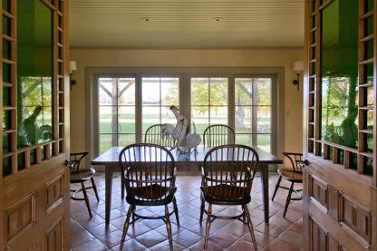 Classic country house on 6 acres with guest cottage, a private pond, and breathtaking views over 30+/- acres of farmland. 3 bedrooms, 2.5 baths in the main house. An additional bedroom, 1.5 baths, living room, kitchen and sauna in the guest house. Heated gunite pool, outdoor showers, garage and gorgeous gardens.