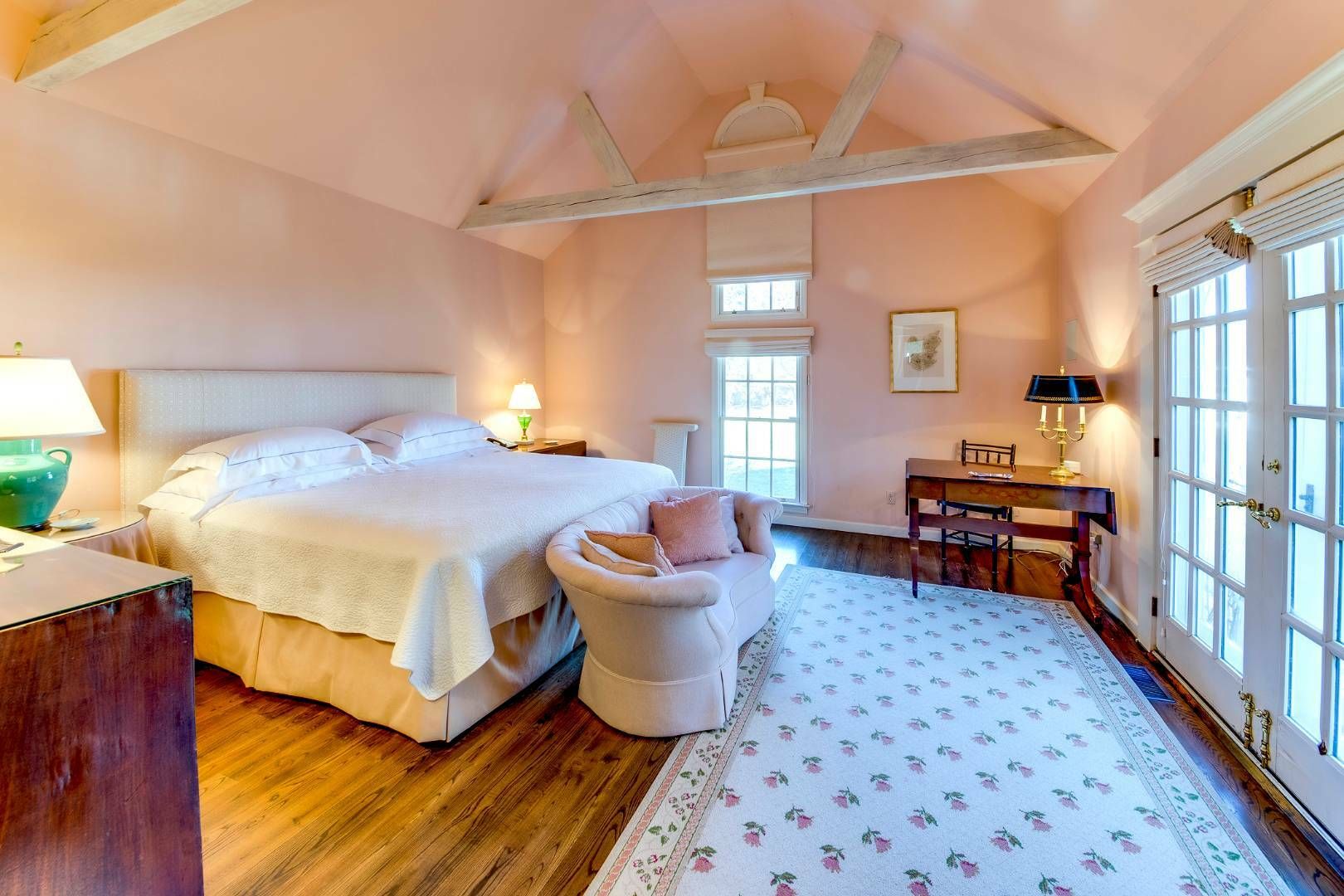 Renovated Farmhouse built in 1885 on 1+/- acre with a pool. There are four bedrooms, six and one half baths, three wonderful fireplaces and a separate heated gunite pool, pool house and a private outdoor shower. Most special location, grounds, landscaping and decor. Complete with two master suites, french doors throughout, dining courtyard and outdoor shower. Bonus is a staff room with a full bathroom.