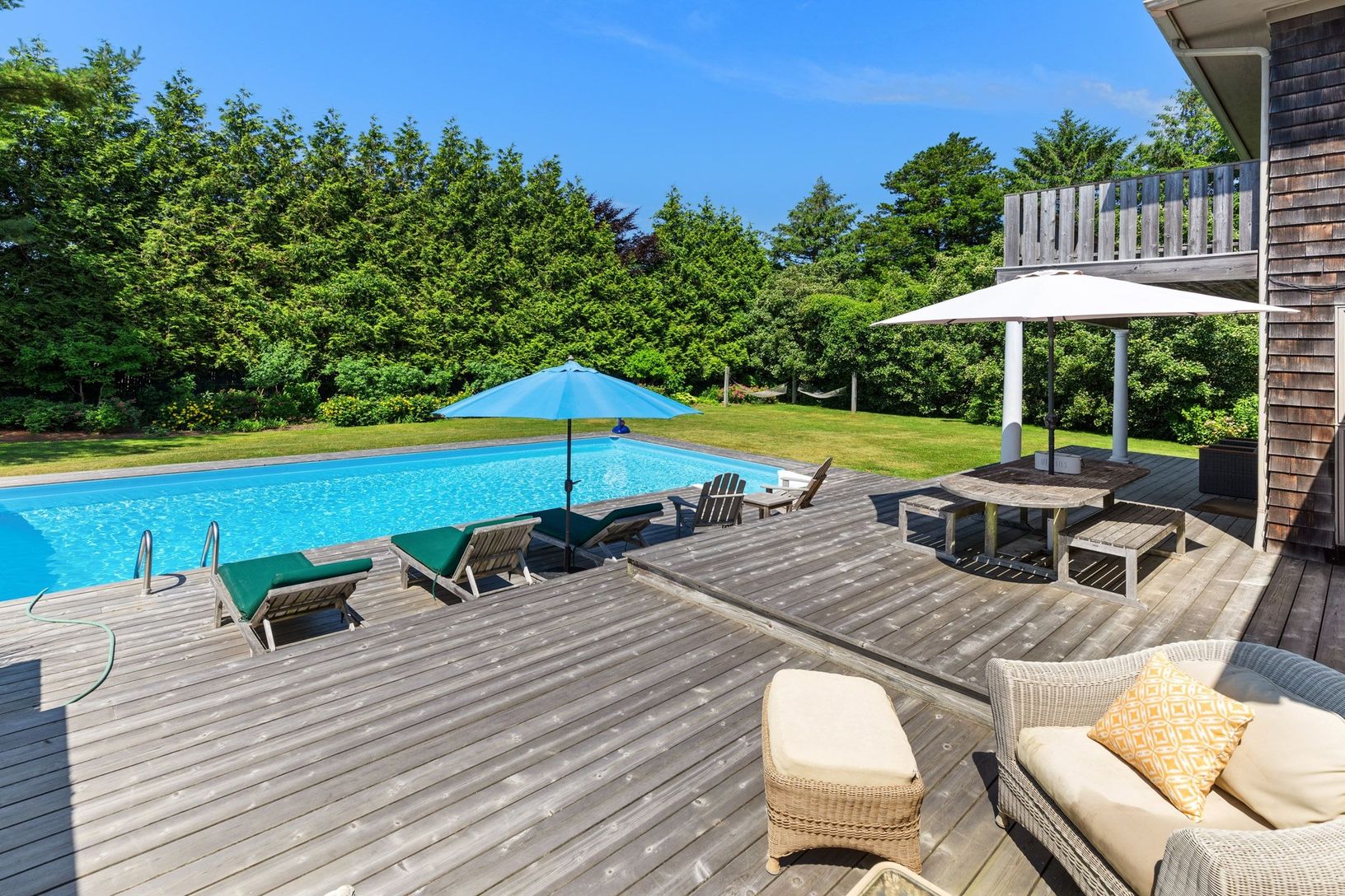 This Wainscott south contemporary is a beach lover's dream. Situated on 0.59 acres in close proximity to the ocean, this 3 bedrooms will make you feel at home right away with well thought spaces, it's surrounded by trees that will keep you in a peaceful environment your whole stay. The private grounds provide a wonderful setting for summer entertaining.
