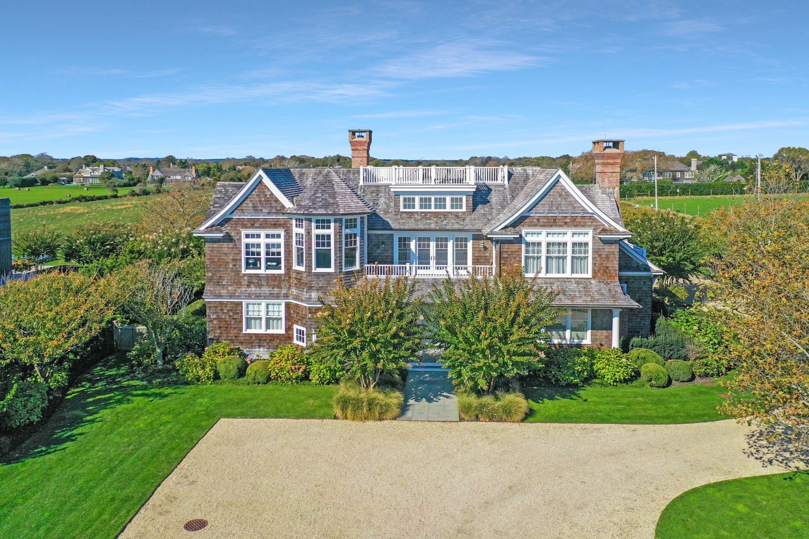 On coveted Gibson Lane, just 500' from the shoreline is this perfect specimen of a home. There are views of the ocean to the south and across an 11 acre agricultural reserve to the north (25% of which would be deeded to you!)-- the best of both worlds. Entering through the gated entrance you sense something wonderous is in store. The paneled entry foyer leads you to a great room, separate dinning room, and den all warmed by fireplaces. The kit