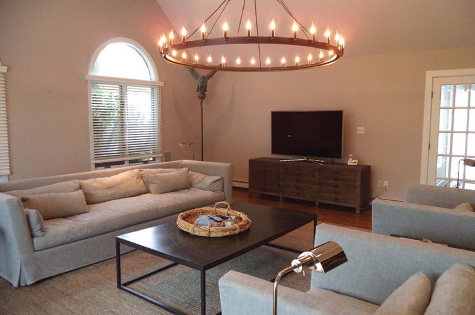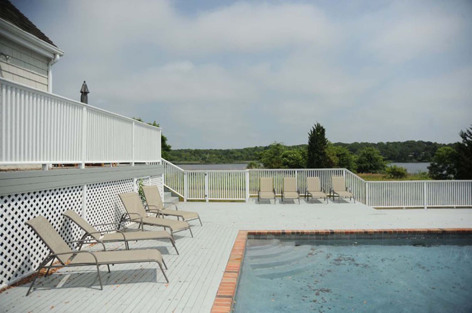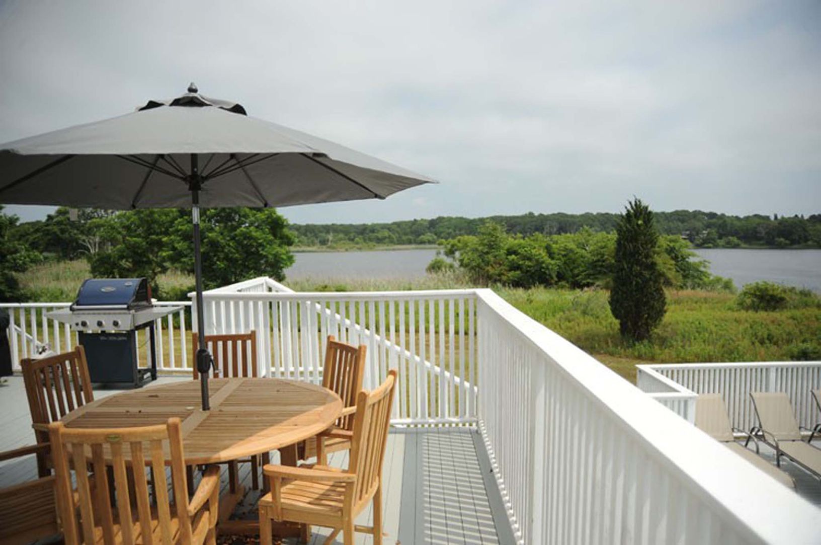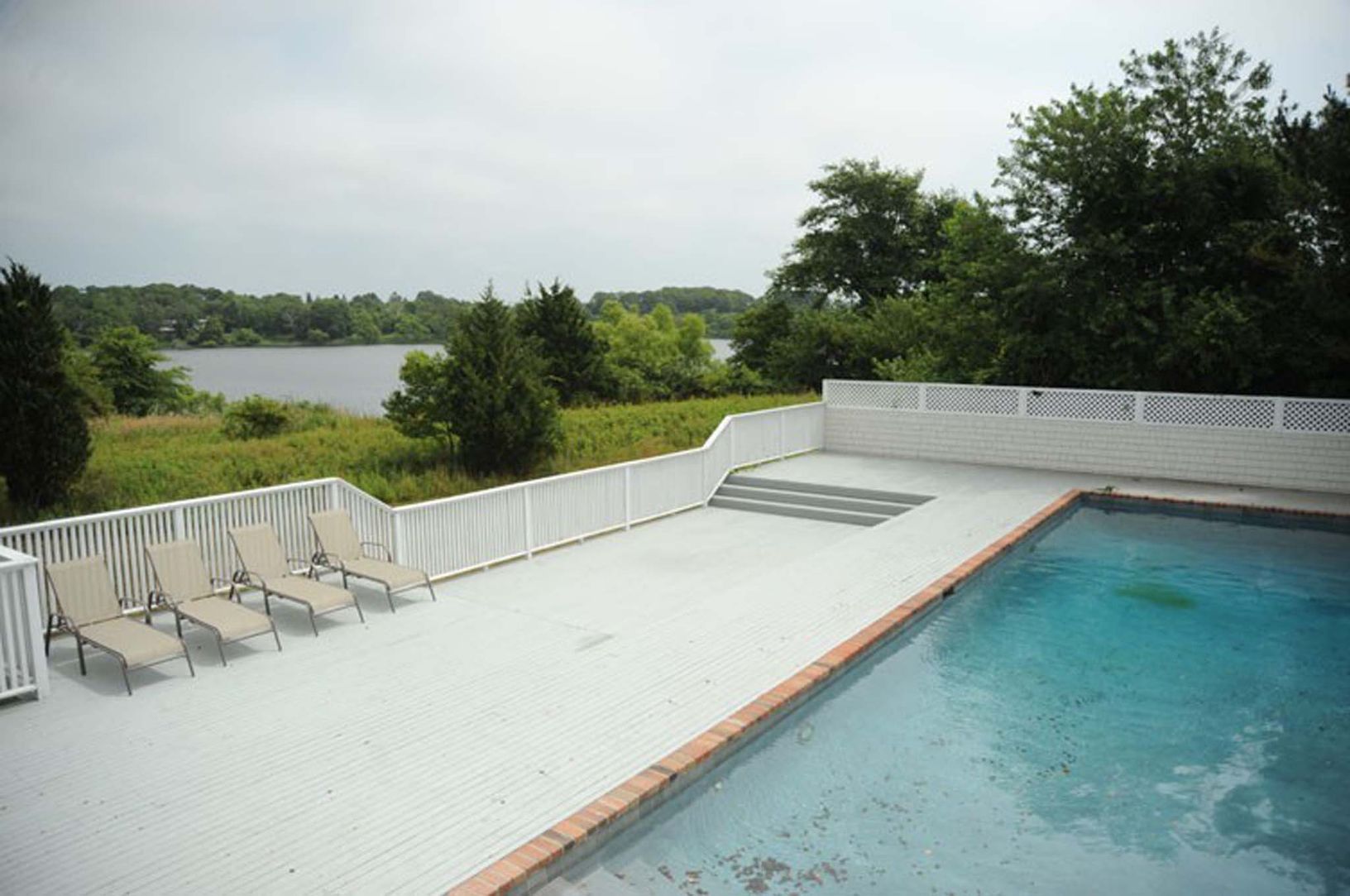 Located on over 3 acres on beautiful Poxabogue Pond is this clean, private 5 bedroom, 4 bath post modern home. It features 2 living rooms, an eat in kitchen with granite counters, central air-conditioning, a 2-car garage and a 50 ft. heated gunite pool. Minutes to Village of Bridgehampton for shopping and dining. Close by ocean beaches.