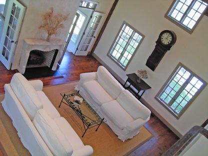 This elegant two-story French-style house is situated on a beautifully landscaped 2.12+/- acre property with numerous flower beds and specimen trees. Well-furnished with antiques, features include an impressive living room with double-height ceiling, library, dining area, gourmet kitchen, four bedrooms, and four and one-half baths. Additional amenities include two fireplaces, central air-conditioning, antique pine floors, beamed construction