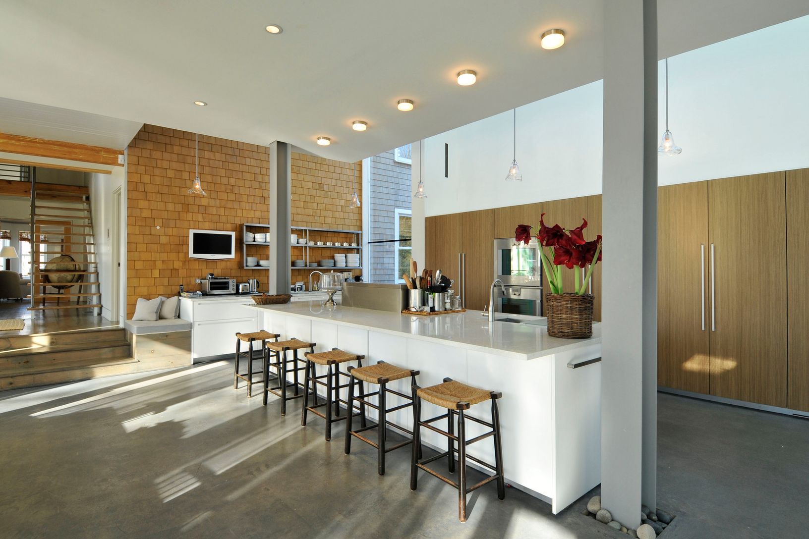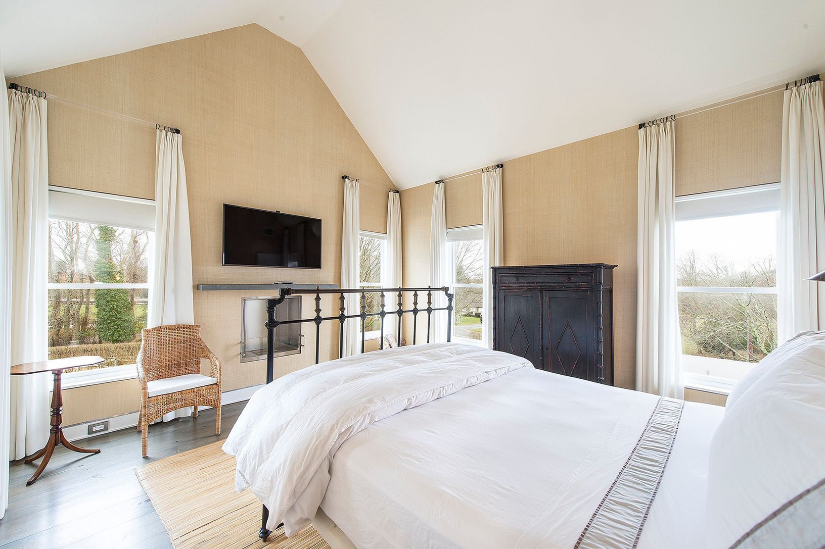 Spend your summer in this modern farmhouse on 1.5+/- acres in Sagaponack south. This sun-drenched property is ideally located close to ocean beaches, farm stands, and Wolffer vineyard. This smart home, with all green operating systems from the materials to the electronics, features soaring ceilings and spacious open living, six bedrooms, plus including the amazing master suite, nine baths, library/office, media room, exercise room with sauna,