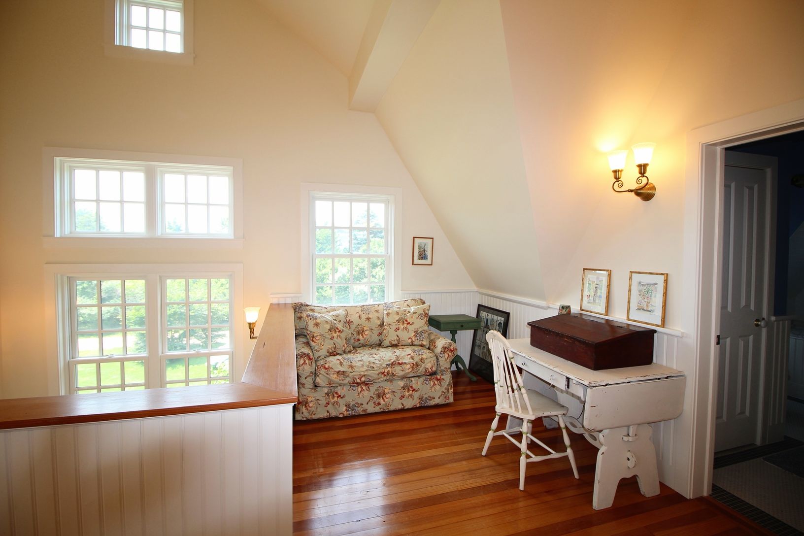 Bordering farm land this 3 bedroom, 3.5 bath home has spacious living areas perfect for entertaining. Lovely home on 1.2 gorgeous acre flag lot overlooking farmlands. Open kitchen and eat in sunroom. Living and dining area with fireplace. Den with full bathroom on first floor. Second floor has a master with own private deck overlooking farmlands ensuite bathroom has large tub and a separate shower. Two guest bedrooms, additional guest bath,