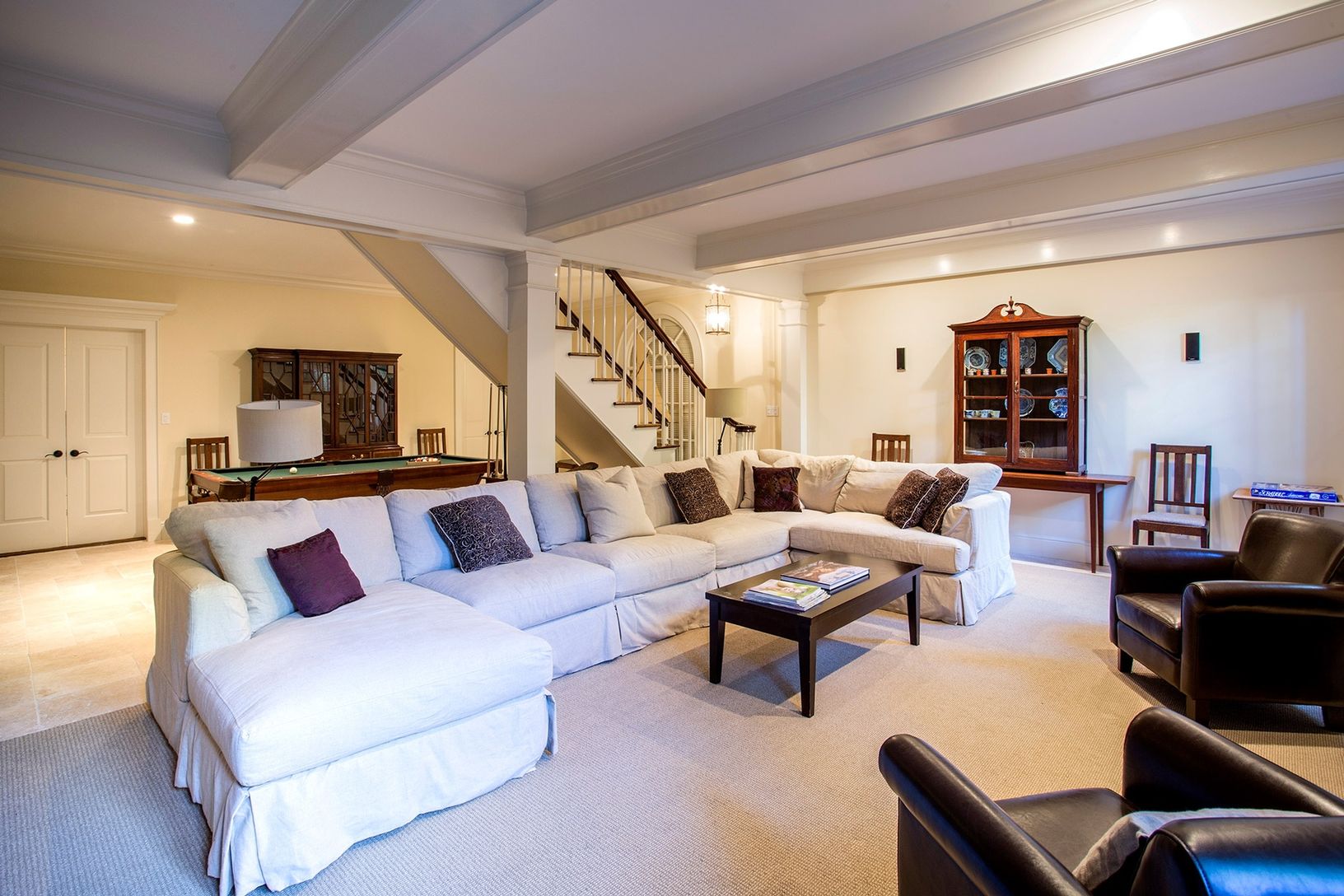 Located in the very sought after south-of-the-highway location close to the beach is this newly renovated and expanded 7500 SF +/- elegant residence.. It sits proudly on 1.3 +/- acres with beautifully landscaped English gardens and a heated pool. The residence as well as a guest cottage offers eight ensuite bedrooms including a first floor primary bedroom, eight full and one-half baths, four fireplaces, a gourmet kitchen and all new amenities